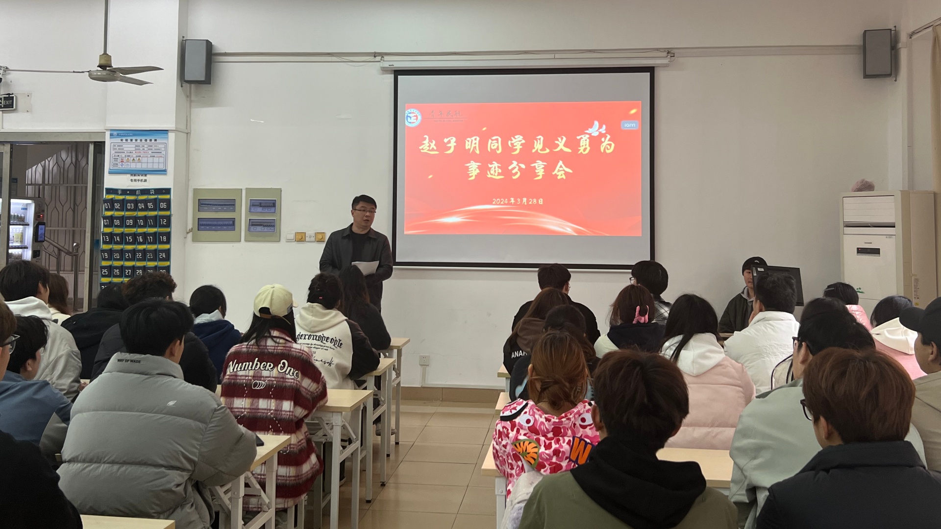 为深入学习贯彻习近平总书记关于见义勇为事业的重要指示批示精神,充分发挥先进典型的示范、带动和辐射作用,号召全校师生学习赵子明同学舍己救人、见义勇为的优秀品质,在校园内营造学习、传递、弘扬正能量的浓厚氛围。民用航空系于2024年3月28日召开赵子明同学见义勇为先进事迹分享会。民用航空系主任吴慧、党群工作部副部长郑瑞、学生处副处长毛茂,见义勇为学生、辅导员代表、各系学生代表一同参加会议。会议由民用航空系党支部书记、副主任查理主持。