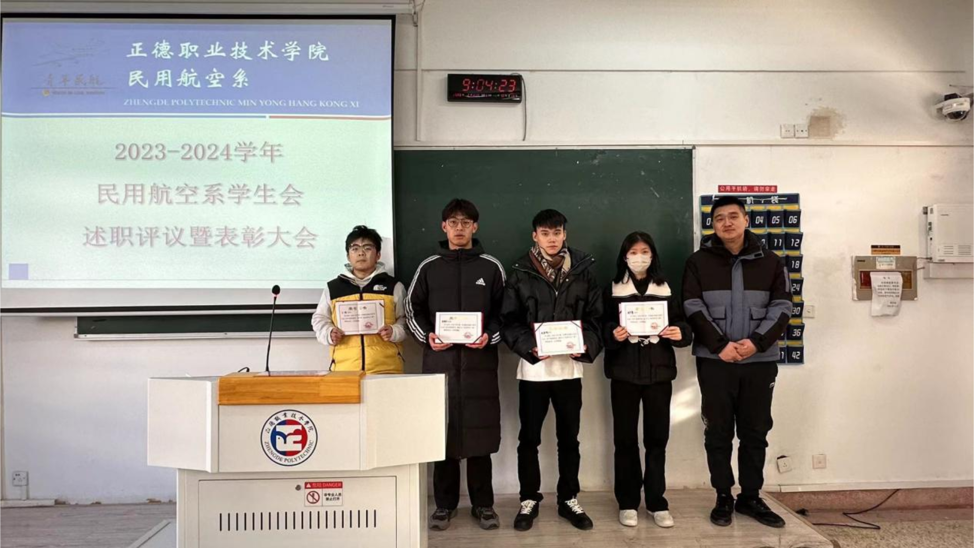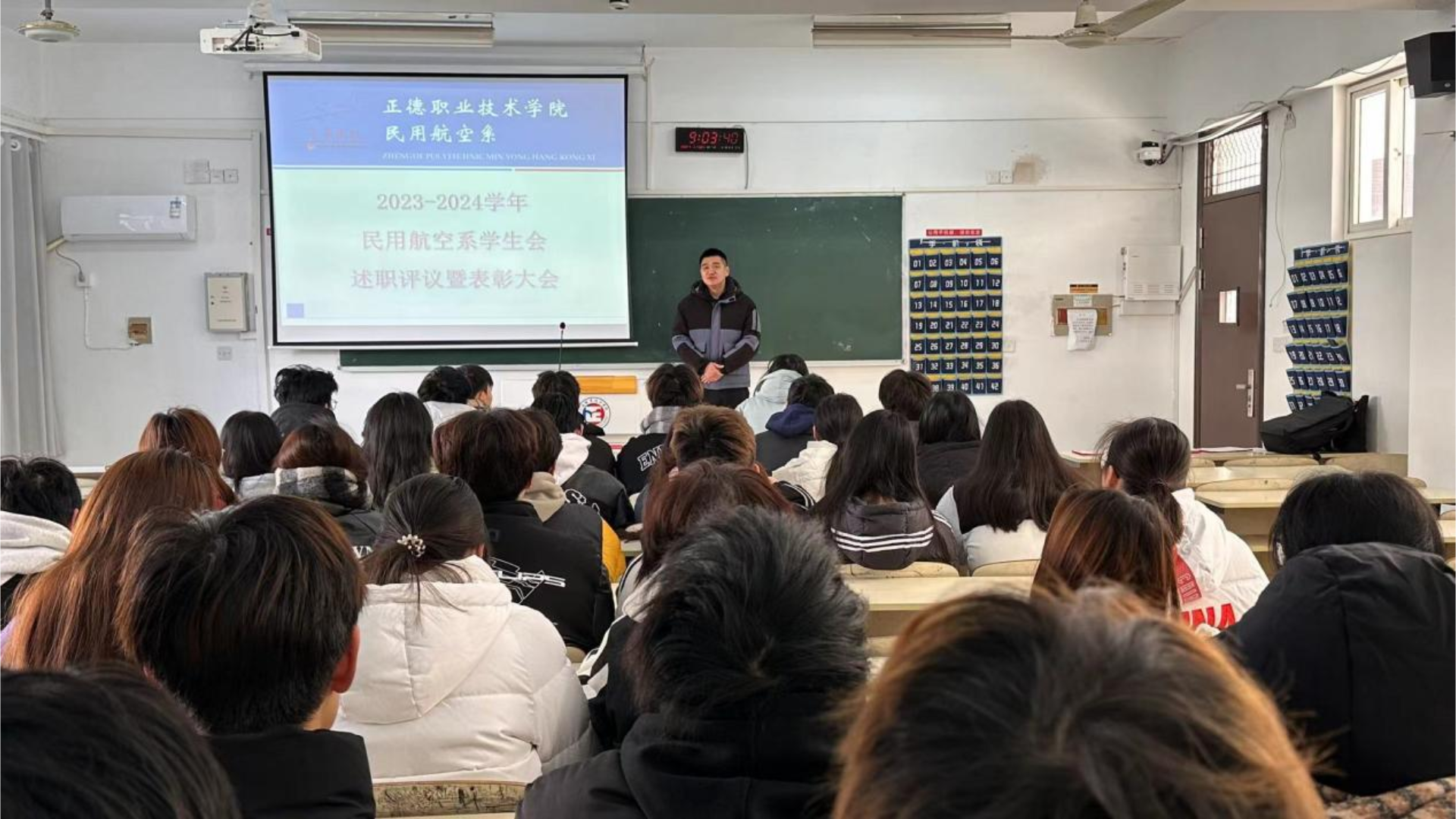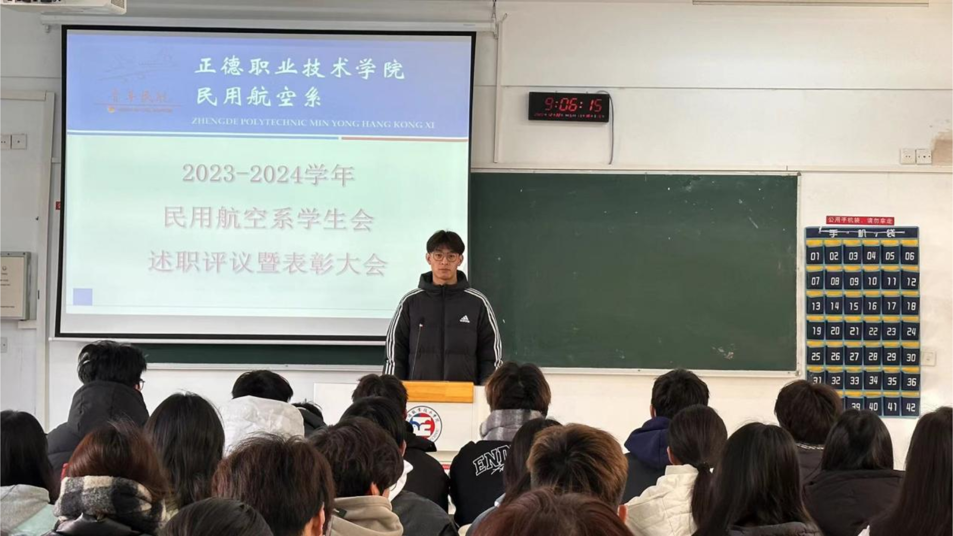 为深入贯彻党的二十大精神和习近平总书记关于青年工作的重要讲话精神,进一步深化新时代高校学生会改革和建设,不断提升同学满意度、大局贡献度和社会认可度。民用航空系学生会于2023年12月22日在2305教室组织召开2023年度述职评议暨表彰大会。民用航空系党支部书记虞骏卿、团总支书记陈瑶以及民用航空系学生会全体成员参加会议,会议由学生会主席团成员张俊杰同学主持。