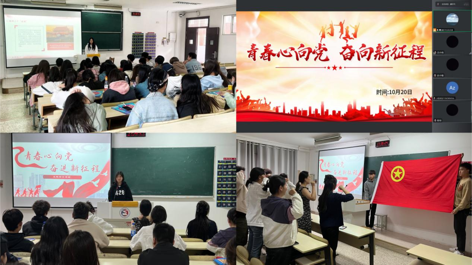 各年级团支书从两个方面突出本次的主题。一是在学党史中坚定理想信念,要提高政治意识,提高掌握全局的学习能力;要增强核心意识,增强班级凝聚力;要增强民主意识,提高班干的治班能力。二是在思想中强化理论武装、增强学习本领。要把一代代中国共产党人不畏艰险、勇于担当、甘于奉献、百折不挠的优秀品格发扬光大,不断增强学习动力,努力前进。每个团支部重温入团誓词,通过庄严的仪式将入团誓词牢记在心,并以此激励自己作为一名共青团员的荣誉感和责任感。