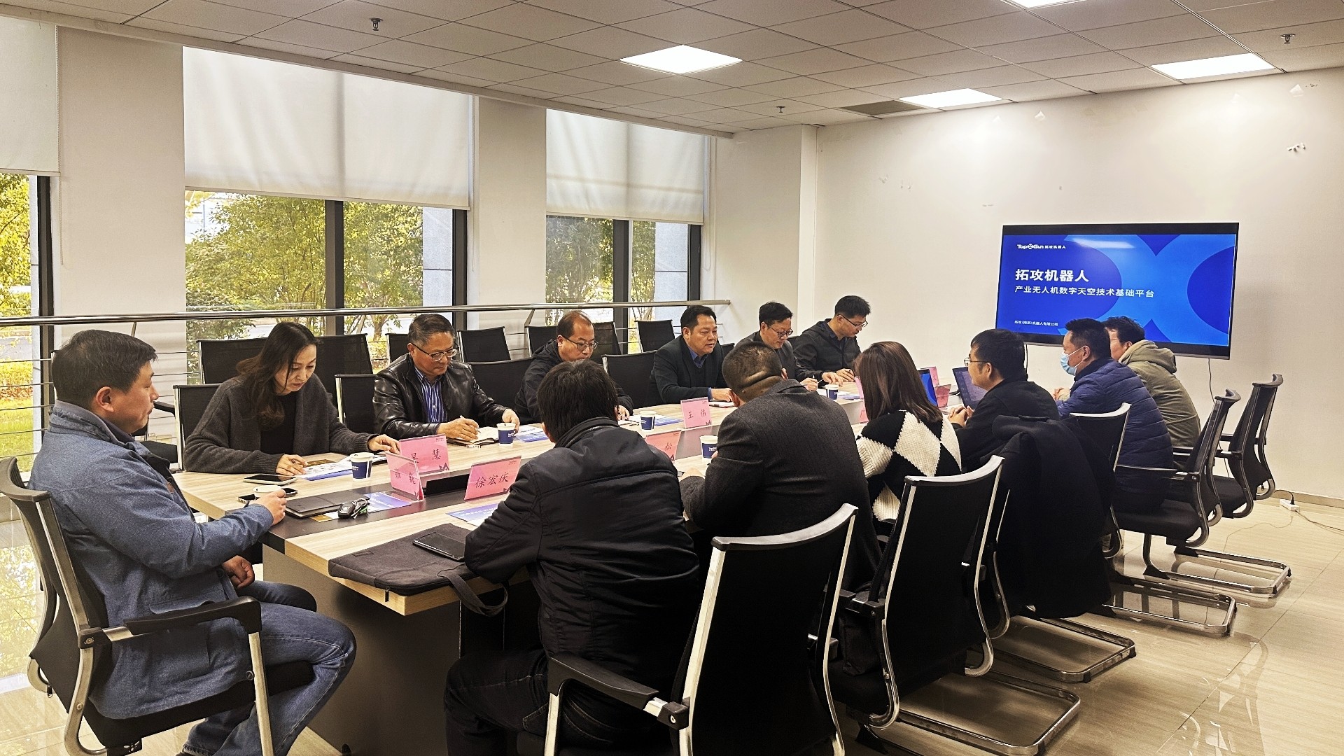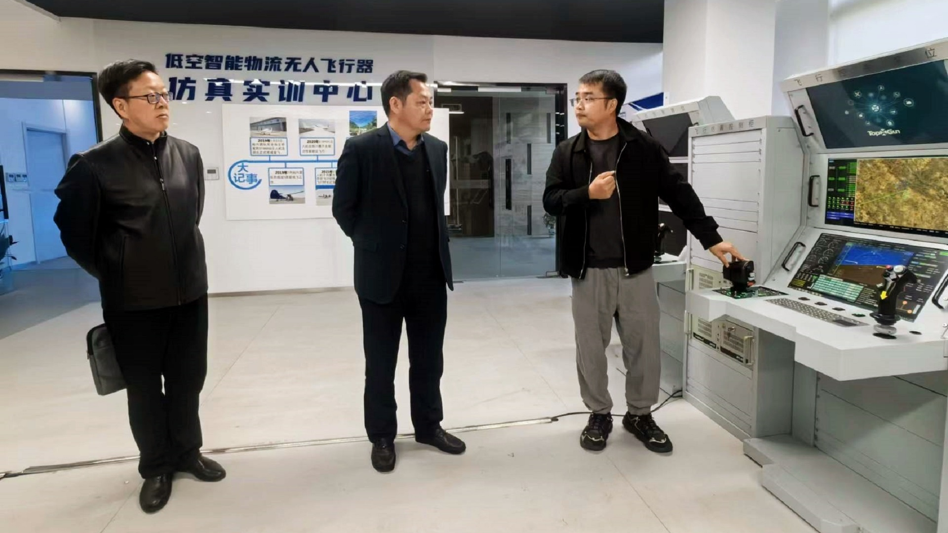 孙永荣一行观看了拓攻丰鹏400农用无人飞机的喷洒演示,参观了公司智能产品展厅、仿真实训中心及无人机生产组装车间等地。在随后的座谈会上,公司负责人尹亮亮等从公司核心能力、创始团队、监管平台、市场情况、教育培训应用服务相关业务等方面进行了介绍,详细阐述了农业应用场景案例和物流场景。表达了产教融合的意愿,并积极参与到探花porn 无人机等专业建设、实训基地建设等项目建设过程中,合作培养无人机应用领域高素质技能人才,共同助力区域经济及产业发展。