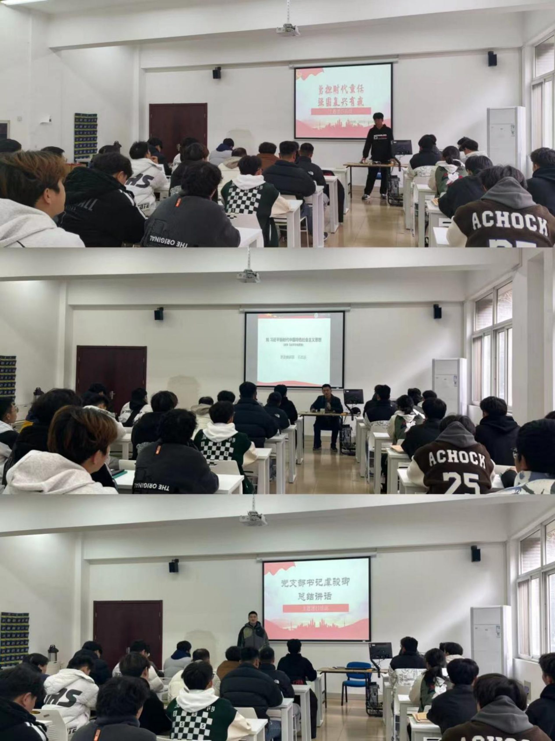会上,239201班团支部书记陈思睿围绕主题,习近平总书记深情寄语新时代中国青年,明确提出树立远大理想、热爱伟大祖国、担当时代责任、勇于砥砺奋斗、练就过硬本领、锤炼品德修为六点希望,为青年的成长提供了遵循、为青春的航程指明了方向。接着,任志远老师结合《习近平新时代中国特色社会主义思想概论》课程内容,带领大家从时代条件和实践基础、创新途径和主要内容、历史地位和重大意义三个方面深入浅出地阐述了习近平新时代中国特色社会主义思想的形成过程、创新特点和指导价值。他指出,习近平新时代中国特色社会主义思想是当代中国马克思主义、二十一世纪马克思主义,是中华文化和中国精神的时代精华,实现了马克思主义中国化新的飞跃。在组织交流研讨环节,陈瑶围绕学习心得体会、关心关注问题进行交流研讨,听取学生意见建议,回应学生关切问题,解答学生思想困惑。