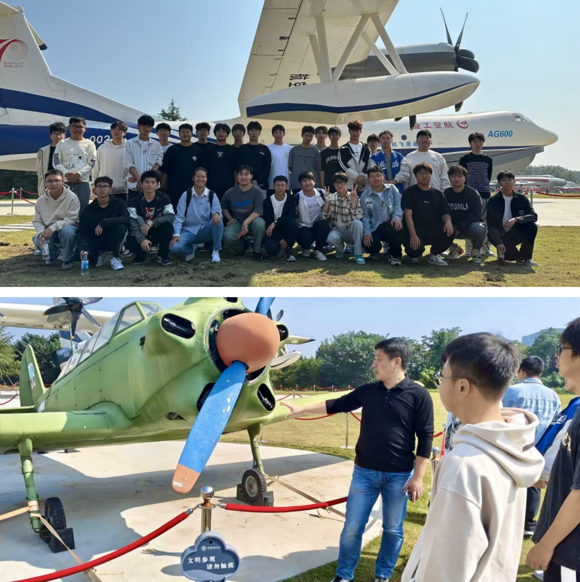10月18日上午,飞机机电设备维修专业2023级新生在专业教师雍巍的带领下,前往南京航空航天大学将军路校区实施航空器维修工程导论课的现场教学。