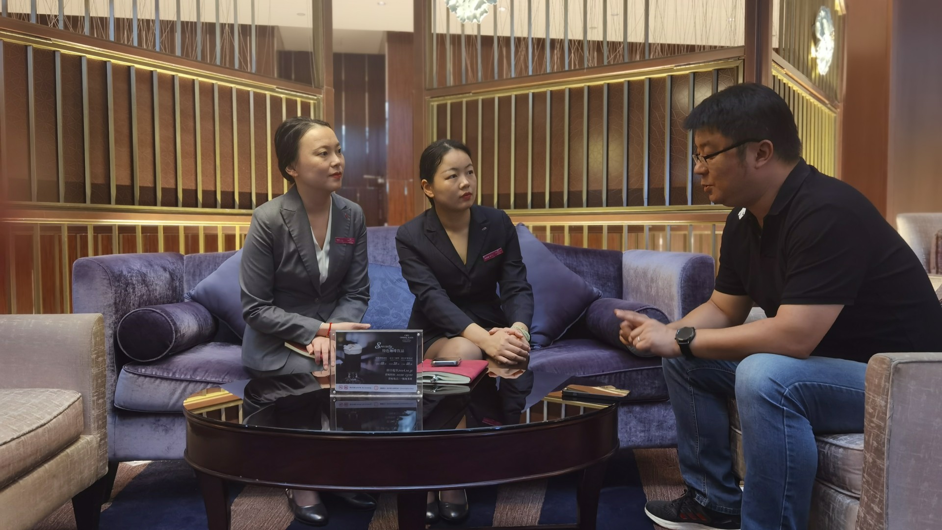 参观结束后,双方进行了座谈。查书记强调加强校企之间的产学研合作,对深化产教融合,推动学生实习就业一体化,输送高质量的专业人才等具有重要意义。查书记与酒店人力资源部张总、周总分别专业特色、学生培养情况以及顶岗实习现状等方面进行交流。