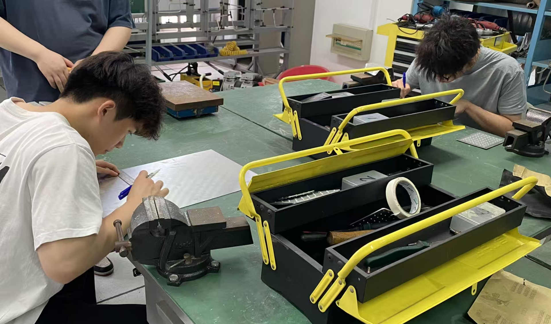 实训课程中,学生不但学习了铝合金钣铆操作、航空标线施工、飞机管路施工及保险施工,还在南航A320/B737飞机维修虚拟仿真国家级实训室进行了两个不同机型的模拟维修实训。授课老师对飞机的各个系统、部件的维修操作进行了详细的讲解,并介绍了飞机航线维护设施、定检任务实施过程、工作中的安全要求等相关内容。学生在东航教员的带领之下赴南航天目湖校区进行波音B737飞机航线维护实训并进行课程考核。东航教员老师还向学生分享了不少飞机维修实际工作中的趣事。