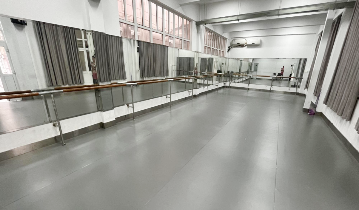 形体实训室:实训室占地面积为140㎡,铺有专业地胶,墙面四周玻璃镜,壁挂式把杆,配有音响,通过形体动作、表情等方面的训练,帮助学生掌握形态、礼仪、个人形象塑造基本技能。