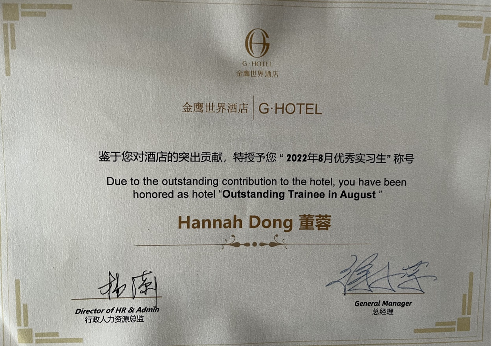 级学生。在实习期间,她忠于职守、勤奋务实、仔细履行岗位职责。实习结束后,顺利被金鹰