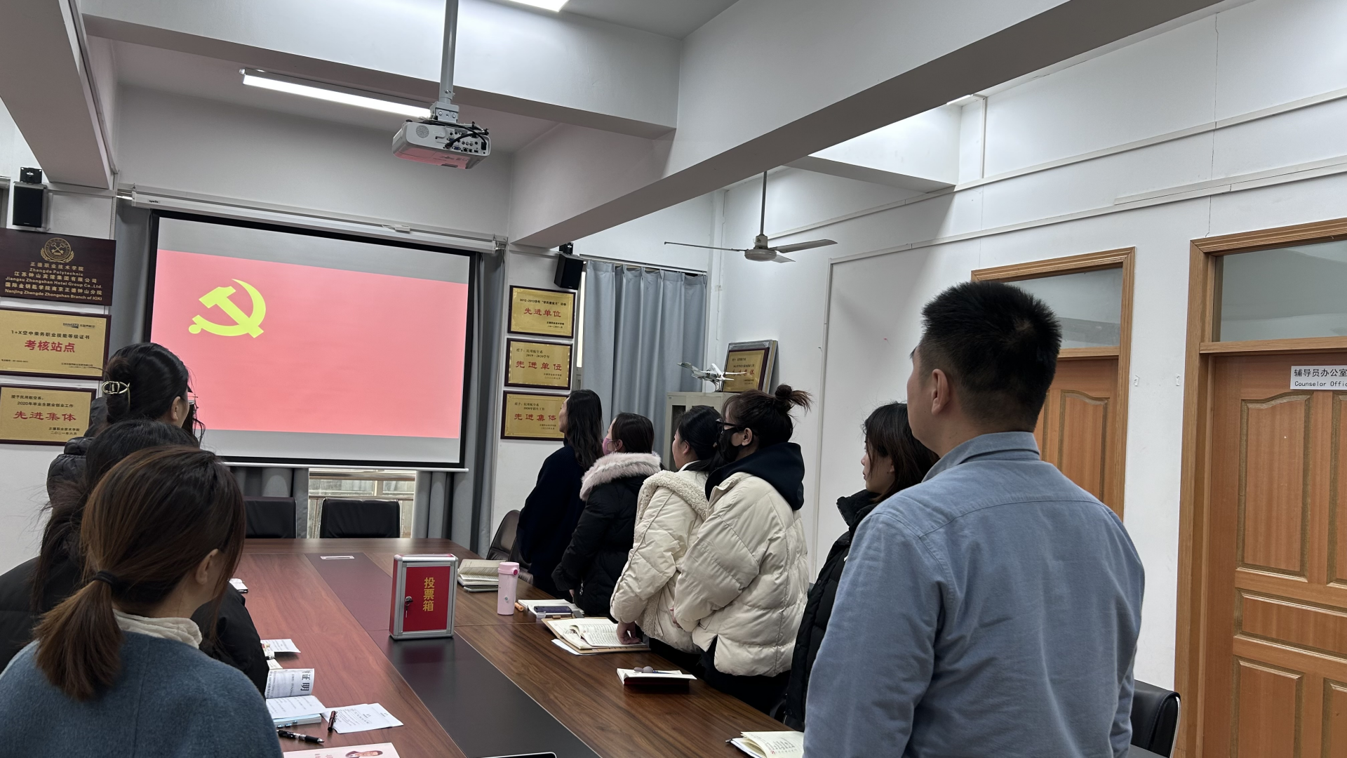 会议在雄壮的《国歌》声中拉开了帷幕。虞骏卿代表上一届党支部委员会作工作报告。虞书记从加强政治理论学习、坚持“三会一课”制度、支部主题活动、党员队伍管理、创新工作方法五个方面回顾了上一届党支部工作,总结了经验,查找了不足,明确了新一届党支部委员会今后的工作思路和主要任务。