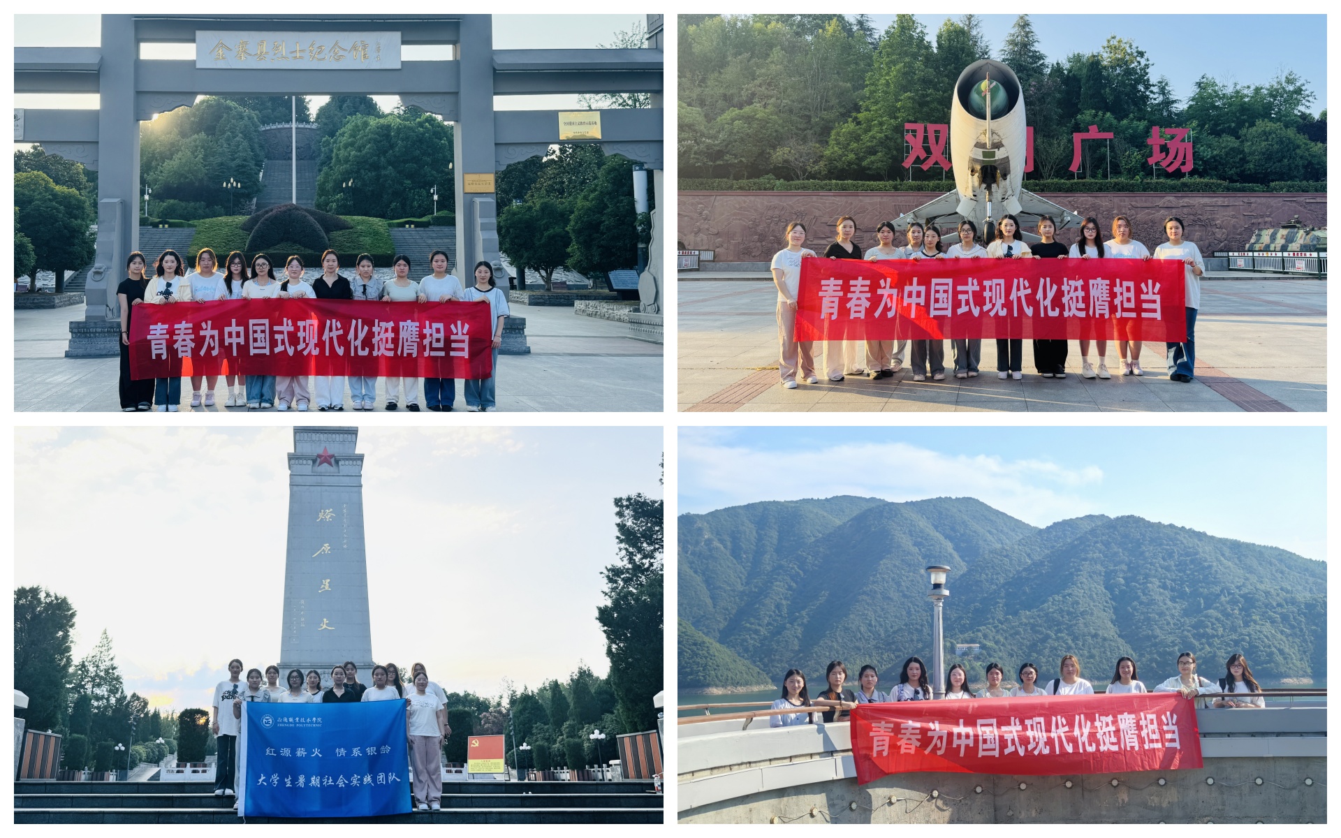 在理论学习的基础上,团队进一步走进红色基地,实地感悟历史脉络。深入安徽六安梅山水库与鄂豫皖红军纪念园,在山水间触摸历史脉络,于交流中感悟红色传承。站在水库大坝,壮阔的水面与雄伟的建筑交织成独特风景。同学们漫步坝区,观察泄洪设施、了解水文监测系统,真切感受先辈们“愚公移山”般的奋斗精神,体会水利工程对六安地区发展的深远意义,让红色实践的认知从人文传承拓展到民生建设维度。