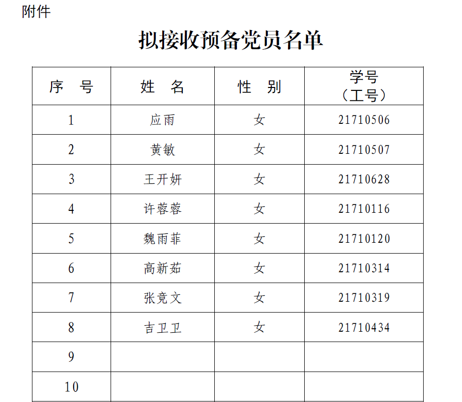 经党组织培养考察,基础教育系党支部2023年下半年拟接收8名同志(名单附后)为中共预备党员。根据《中共探花porn 委员会发展党员工作实施细则》文件精神,党员和群众对发展以上同志为中共预备党员如有异议,可以采用口头或书面形式于11月27日前,向基础教育系党支部反映。
