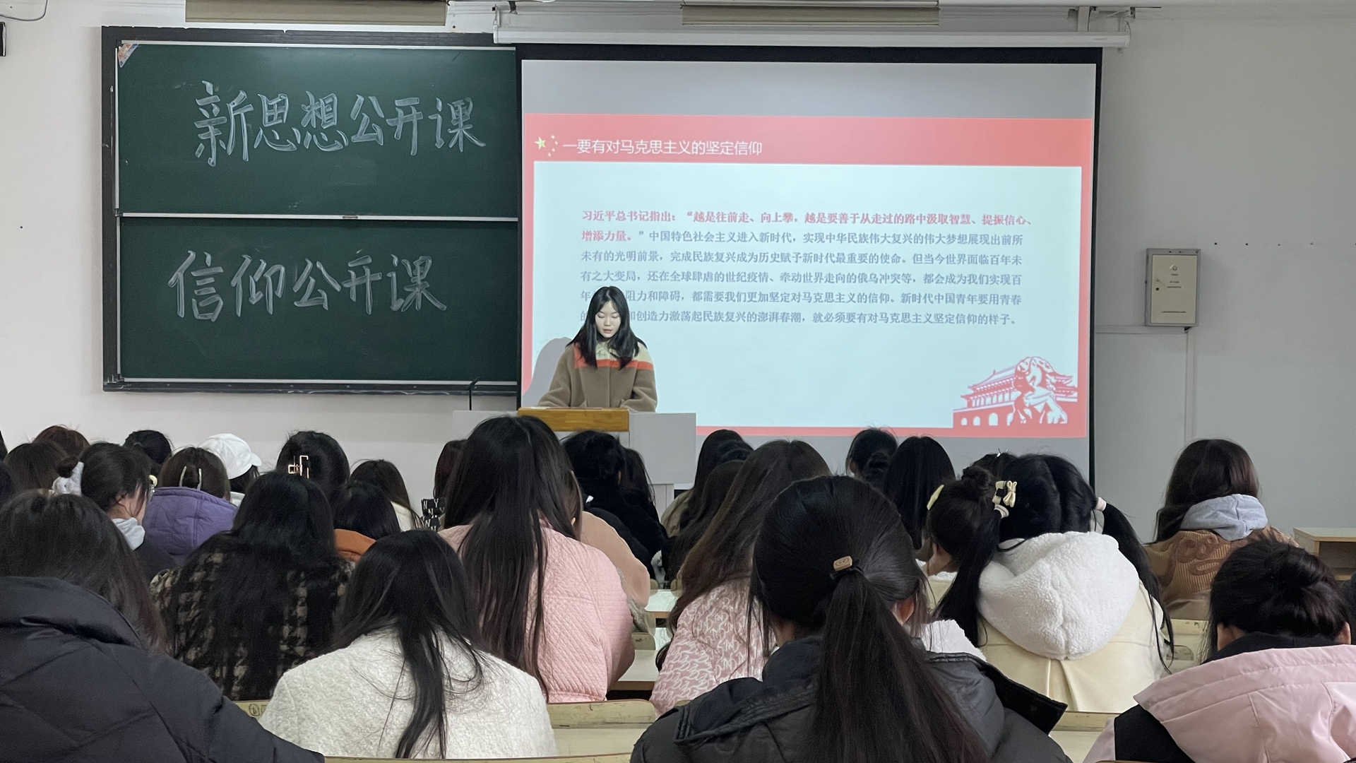 为深入学习宣传贯彻党的二十大精神和习近平新时代中国特色社会主义思想,落实立德树人根本任务,引导广大青年学生坚定信念“听党话、跟党走”。基础教育系团总支结合院团委《关于实施高校“信仰公开课”计划的通知,于在2月16日下午在1203教室举行了以“新时代中国青年要有的样子”为主题的新思想信仰公开课。此次“信仰公开课”由院二十大精神宣讲团成员厉宇宁主讲。