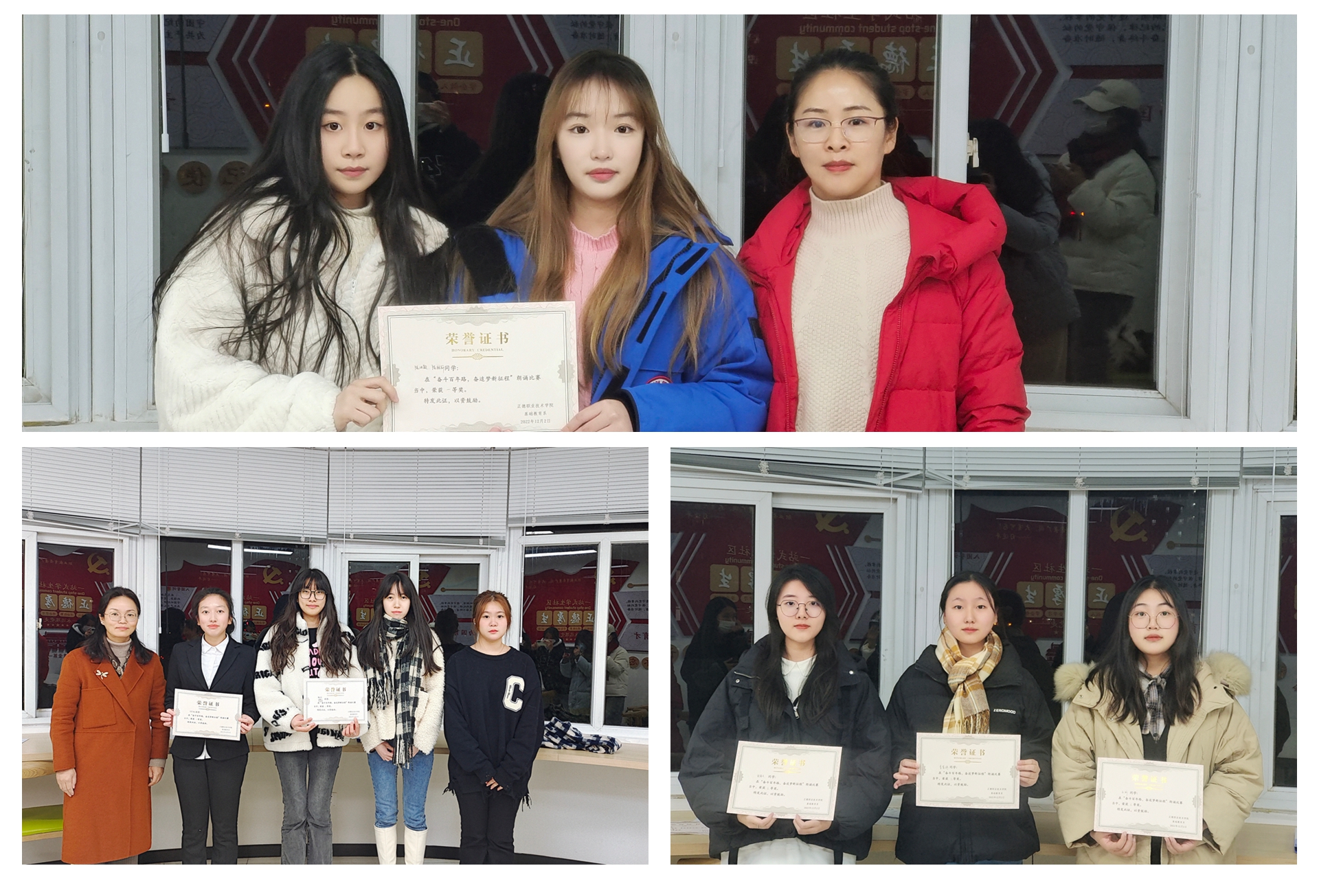最终,陈冰颖、陈林轩两位同学荣获一等奖;宗若涵,曹佳彦、袁梦洁、吴昕桐四位同学荣获二等奖;王妍、张竞文、李紫婷三位同学荣获三等奖。公共教学部周一星老师和基础教育系党支部书记杨春娟老师为获奖同学颁奖。
