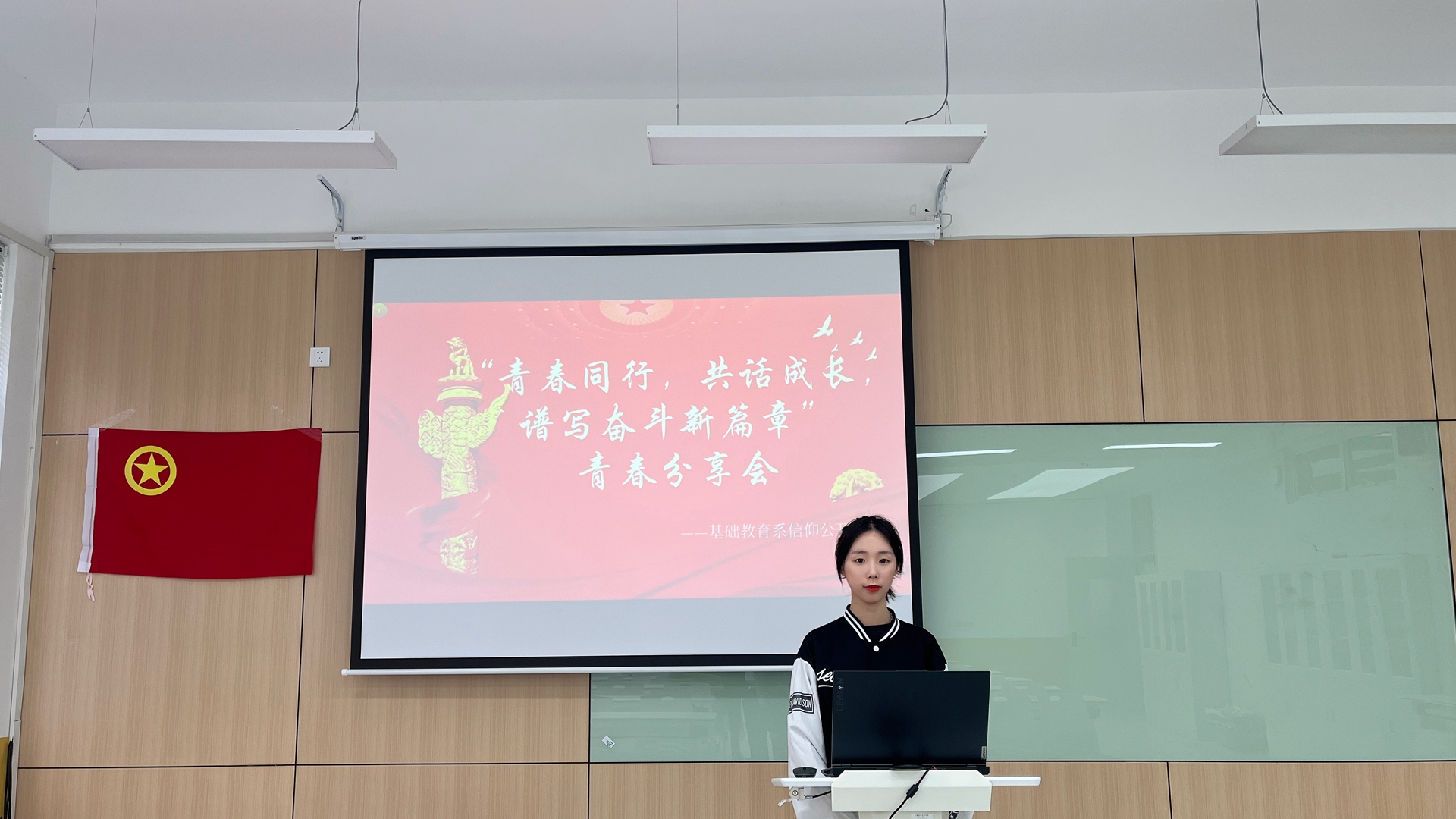 我系团总支创新信仰公课开展形式,特别邀请了秣陵街道翠屏社区的陈老师和何老师来校与我系学子共话青春,开展了一场青春分享交流会。首先,陈老师从自身工作讲起,作为一名基层社区工作者,在疫情期间,她主要负责社区人员排查、门岗管控、环境消杀、居家隔离户管控与服务等工作,讲述了青年一代的新生力量在社区抗疫前线的重要地位。除此之外,陈老师作为社区志愿者团队的负责人,2023年上半年就组织开展志愿服务活动50余次,内容涵盖社区宣传、文体活动、暑期课堂、心理辅导、环境治理、敬老爱老等方面。陈老师表示,要在平凡的岗位创造出不平凡的价值,勉励在座的同学要勤奋学习,不负青春时光。