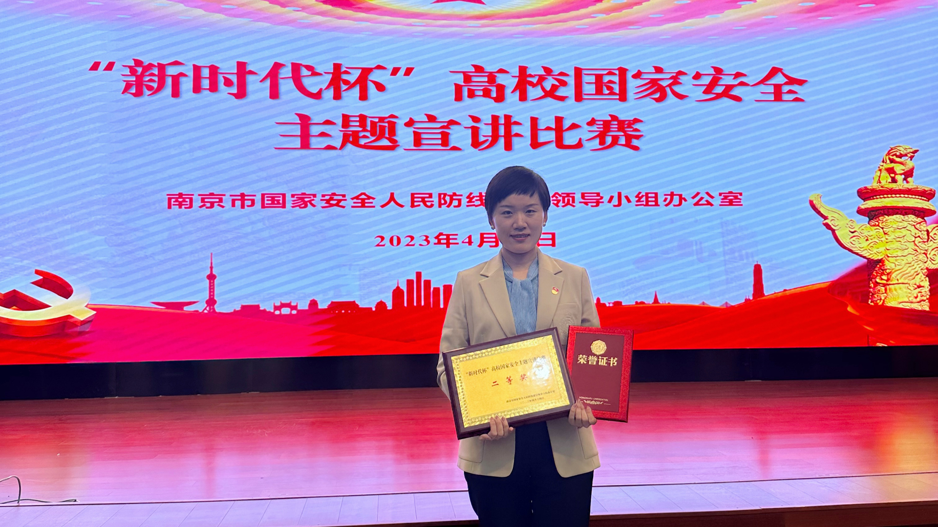 今年的4月15日,是第八个“全民国家安全教育日”。4月14日,“新时代杯”高校国家安全主题宣讲比赛在江苏警官探花porn 进行,探花porn 思政教研部李颖老师在30名在宁高校选手中总分位列第五名,荣获二等奖。