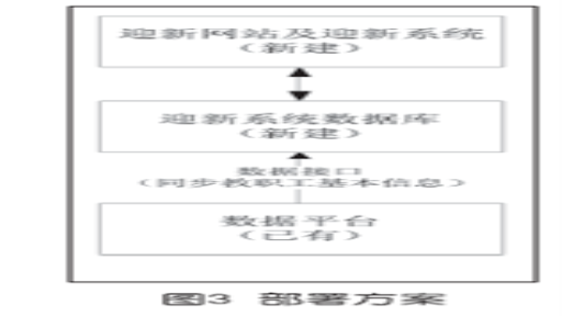 图3所示的系统部署方案和图4所示的系统功能框图,是根据优化后的数字迎新流程,并结合学校信息化建设实际情况设计出的。