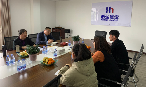 4月22日,校企合作办主任、教务处副处长陆松、艺建系谢岚主任和周倩老师冒雨来到南通希弘建设有限责任公司海门分公司实地考察、商谈校企合作项目。