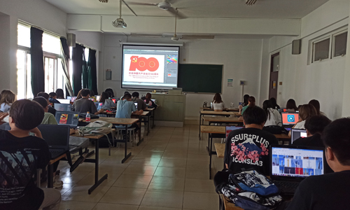 2021年6月25日,艺建系广告设计与制作专业学生为庆祝中国共产党成立100周年,陈青阳老师带领20级广告专业学生在《图像处理》课程里进行建党100周年海报设计,将思政融入课堂,通过海报设计让学生了解了建党100周年活动标志的含义以及党的光辉历程和伟大成就,激励学生更加自觉地为实现中华民族伟大复兴的中国梦而努力奋斗。