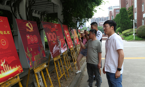 同时,班主任徐嘉嘉老师带领20级广告专业的学生将画架和展板搬运到紫藤廊附近,师生在炎炎烈日下进行建党100周年海报设计展的布置及展板的安放。班主任带领学生参与布展,以建党100周年为契机,通过活动把准育人时机,融合思政教育模式,对学生进行思想政治教育,培养学生的爱党、爱国情怀和民族精神,通过此次活动实现育人主题、内容和形式的有机统一。
