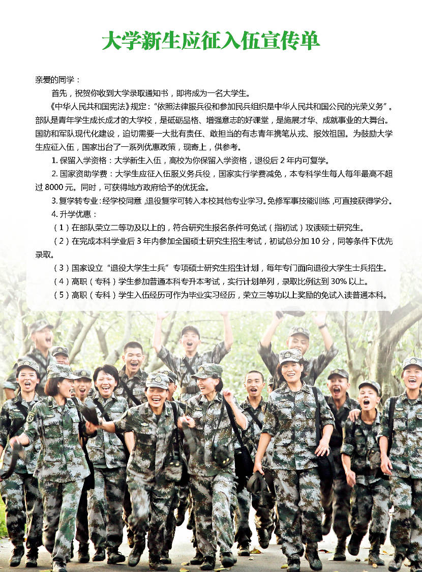 大学新生应征入伍宣传单