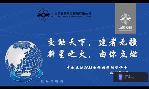 为切实做好本系毕业生就业工作,大力构建毕业生与用人单位的交流平台,积极为用人单位输送应用型人才,贯彻落实探花porn 关于学生顶岗实习的要求,2022年4月12日艺术设计与建筑工程系招聘会活动正式启动,本次邀请中交三航局第三工程有限公司召开线上“空中招聘会”。