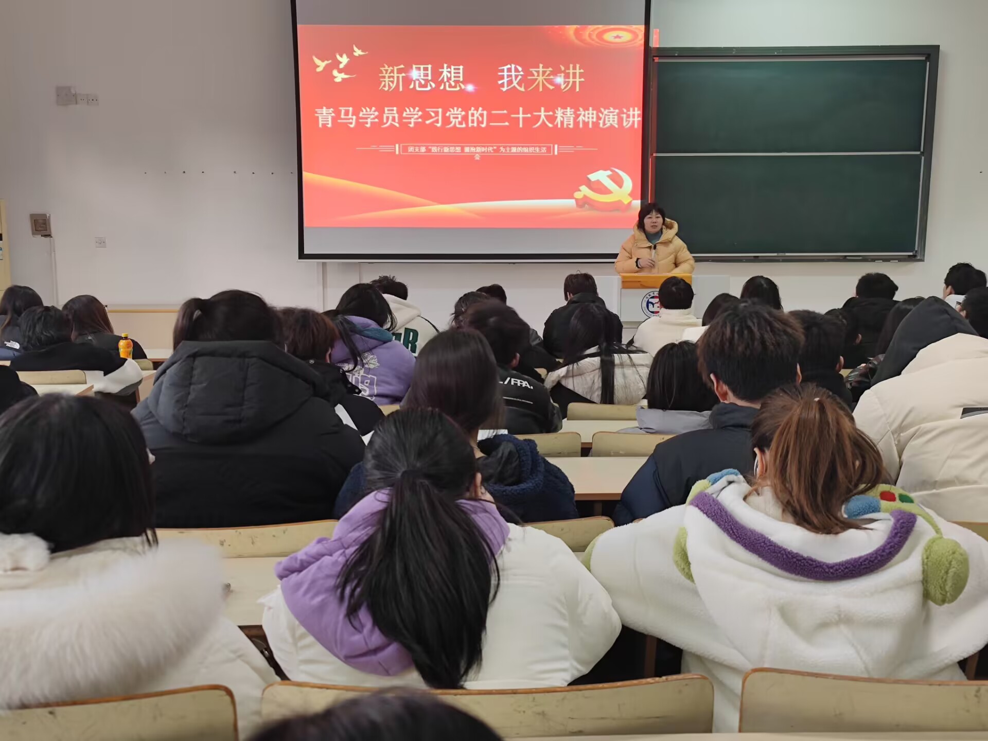百年大党风华正茂,亿万人民自信自强,为引领青年大学生深入学习贯彻习近平新时代中国特色社会主义思想和党的二十大精神,艺建系范小军老师于2月21日在1304教室组织开展“党的二十大精神学习”讲座活动,由范小军老师、吴青老师演讲,环艺、动漫、新闻班全体成员参加。