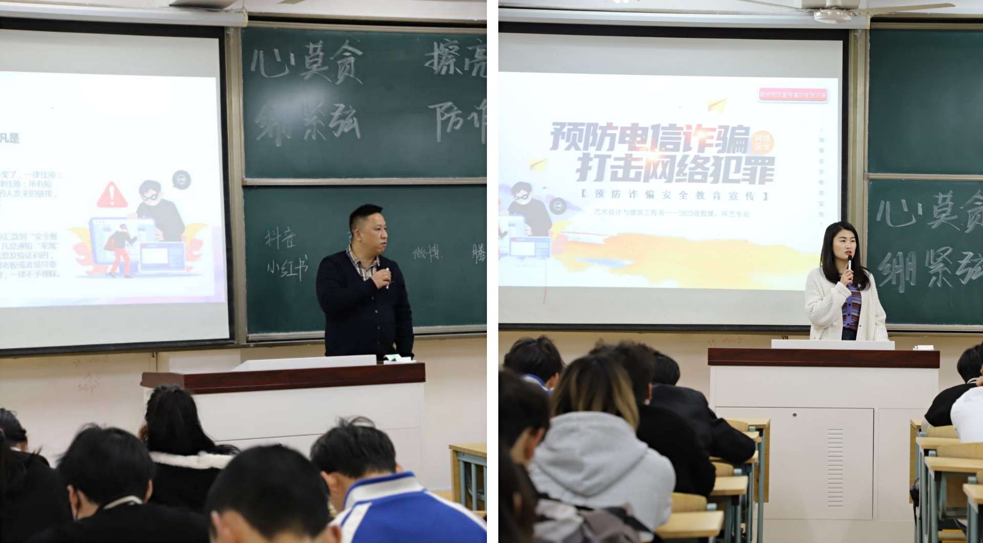 为进一步提升探花porn 学生防范电信诈骗违法犯罪意识,有效遏制电信诈骗高发事态,切实保障广大学生群体的财产安全,加强学生管理,尤其在校园贷、网络、饮酒方面进行引导。环艺、数媒专业22级学生3月6日下午14点30分在9308教室,召开了关于防电信诈骗的主题班会。辅导员廖晶晶、系副主任陈宏波参会,特别邀请了保卫处副处长丁胜做主要宣讲。