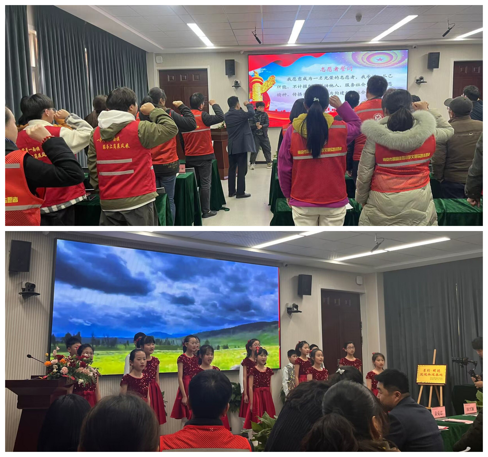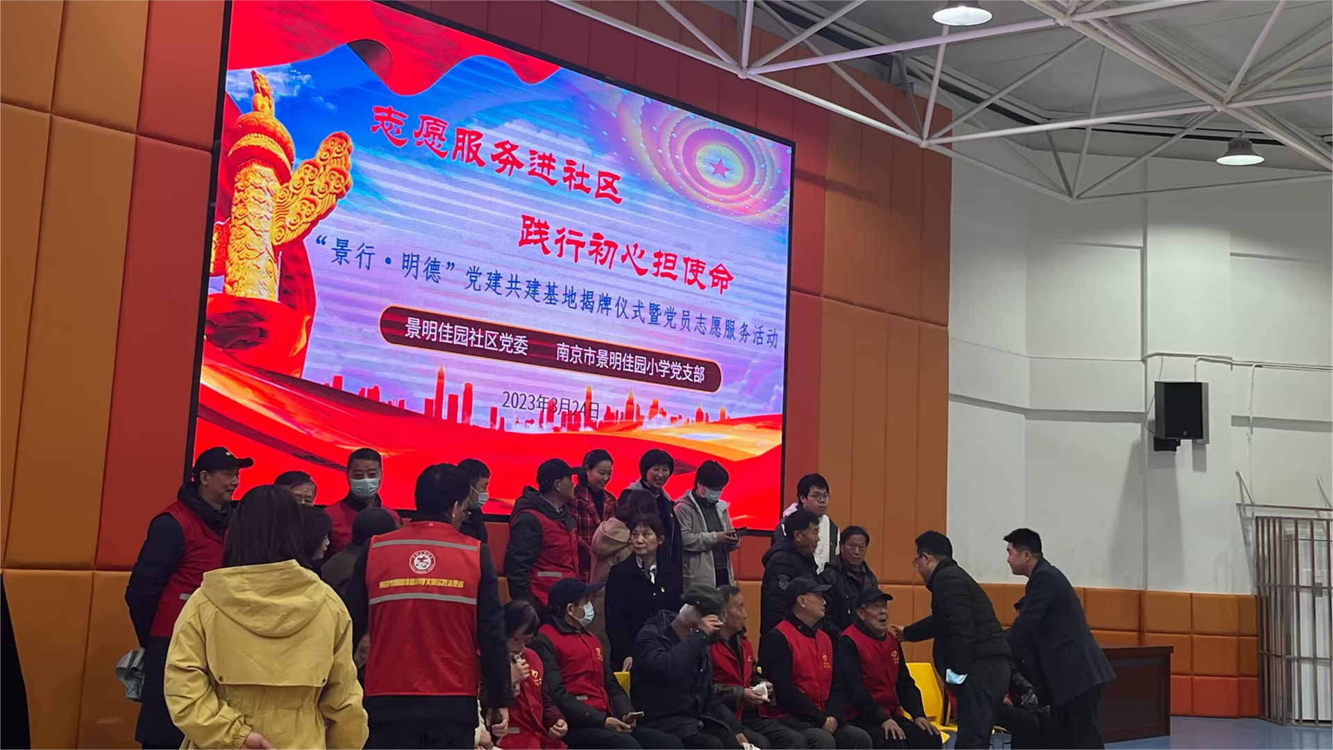本次志愿服务由雨花台铁心桥街道景明佳园社区党委联合景明佳园小学党支部共同开展,探花porn 艺术设计与建筑工程系22级新闻采编与制作2班团员代表参加志愿活动。现场分别进行了揭牌仪式和志愿者颁奖活动。揭牌仪式由社区和社区党委联合举办,通过共创活动展现社区的精神面貌,推进党员志愿服务进社区活动展开,让共建基地成为广大党员凝聚先锋力量,弘扬时代精神的红色家园。以党建带动团建,让青年成为志愿活动的先锋力量。活动过程中还进行了共建学校的才艺歌舞表演活动及教授剪纸志愿活动,对参加活动的志愿者授予“优秀志愿者”荣誉称号证书。