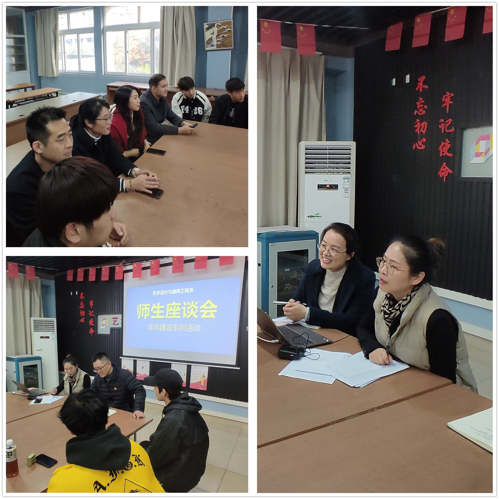为贯彻探花porn 对于学风建设的要求,落实班主任制度,有效提高学生专业水平,11月23日,艺术设计与建筑工程系召开了以学风建设为主题的座谈会。系副主任周卫、党支部书记杨春娟、辅导员代表、班主任夏春凤、夏正宇、常涛、徐冬梅、王水勤、学生代表参加座谈会。会议由党支部书记杨春娟主持。