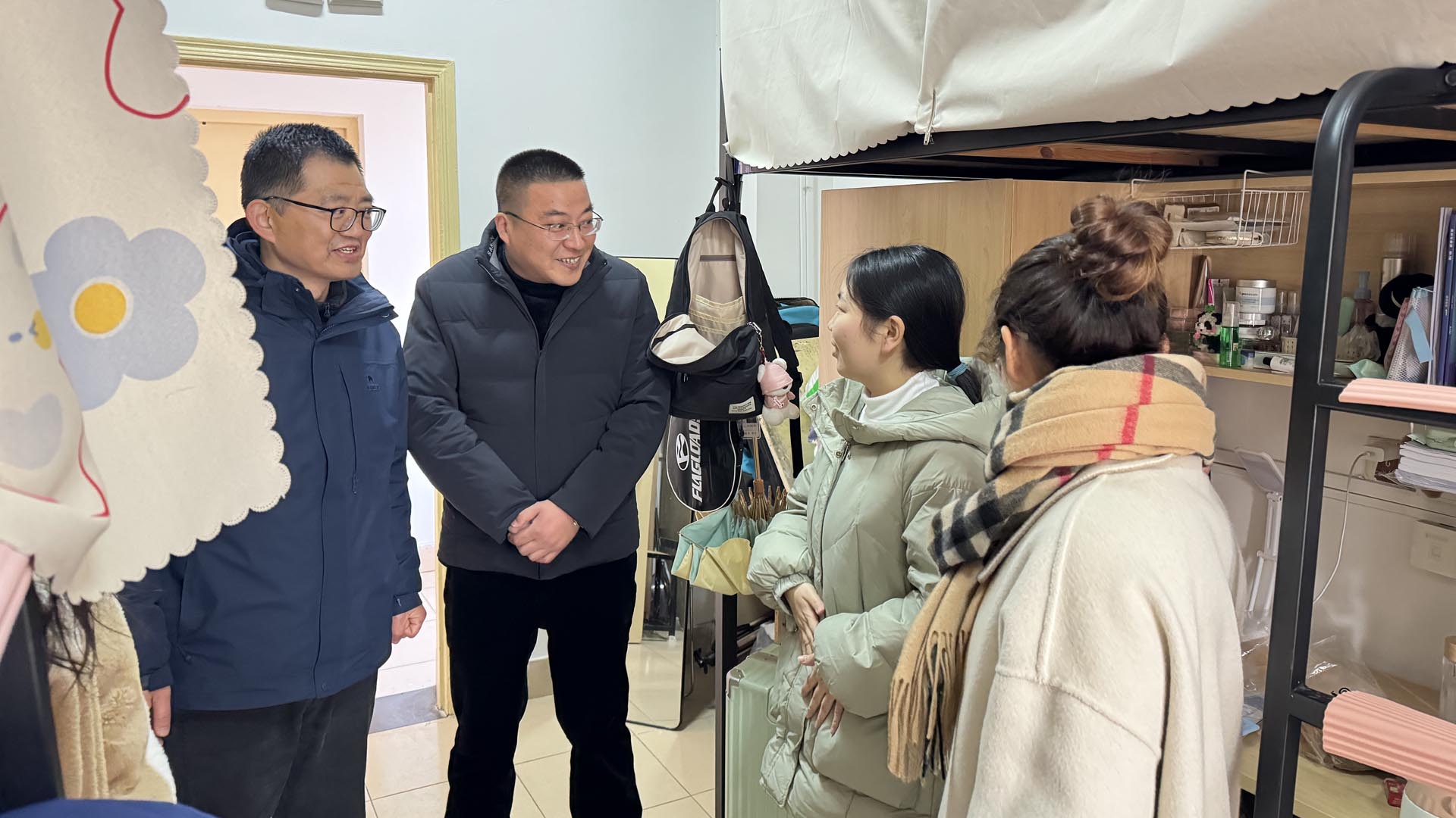 在走访过程中,周卫和陆松与同学们进行了亲切的交流,详细询问了同学们返程的路况,是否有受到大雪的影响。他们还认真了解了同学们在寒假期间的学习进展、生活状况,以及新学期的规划和心理状态。同时嘱咐同学们,无论是学习还是生活中,遇到困难或困惑时,应及时向探花porn 老师、辅导员寻求帮助,鼓励同学们在新学期努力提升自己的专业能力和学术素养。