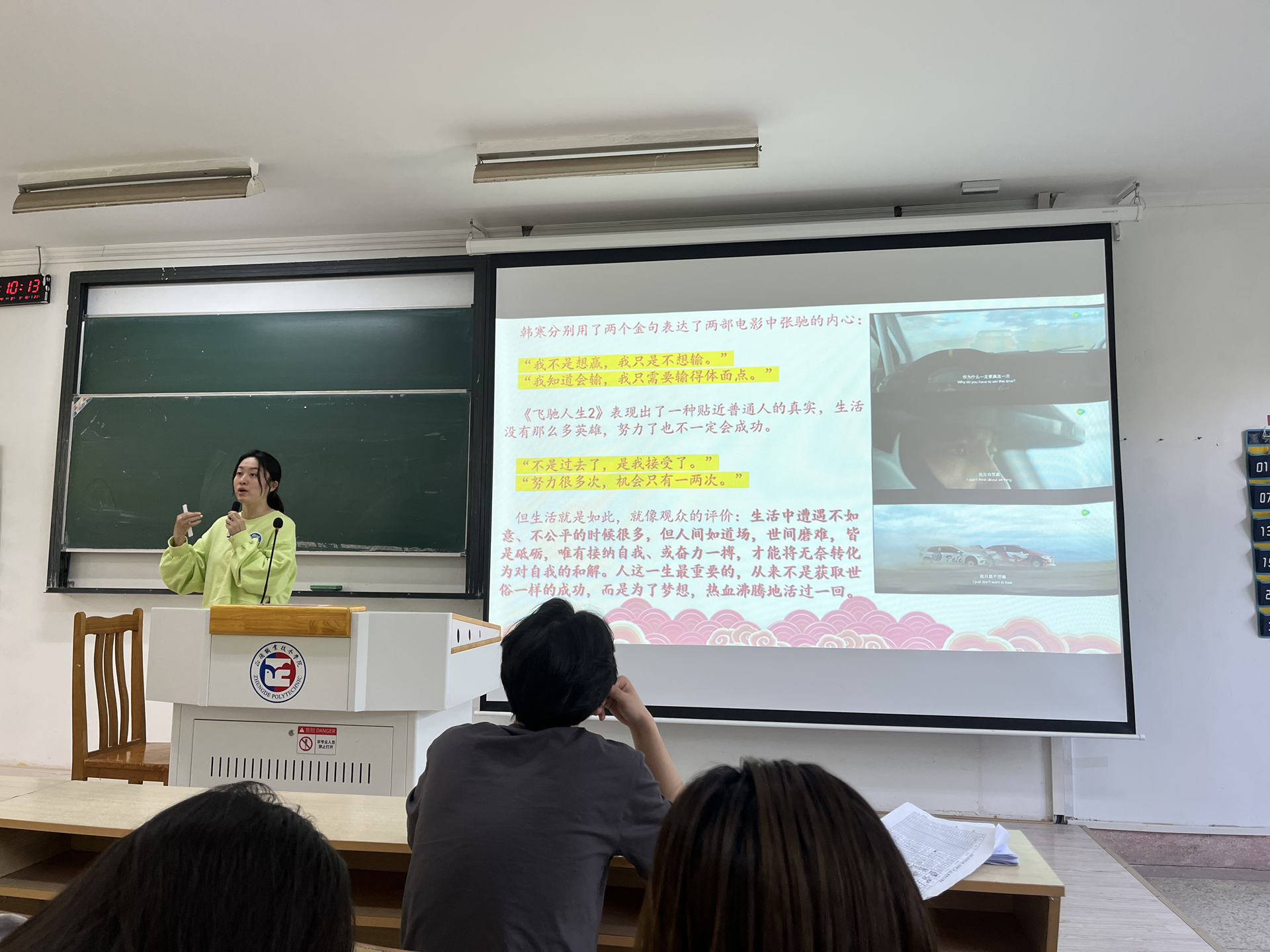 本次月讲评以电影《滚烫热辣》和《飞驰人生》为切入点,寄语同学们在新的学期,用创造力消解所有平凡的日常,用行动力改变所有命运的无常,积力而举、集智而为,引导同学们在青春赛道上“飞驰人生”, 于人生四季中“热辣滚烫”。