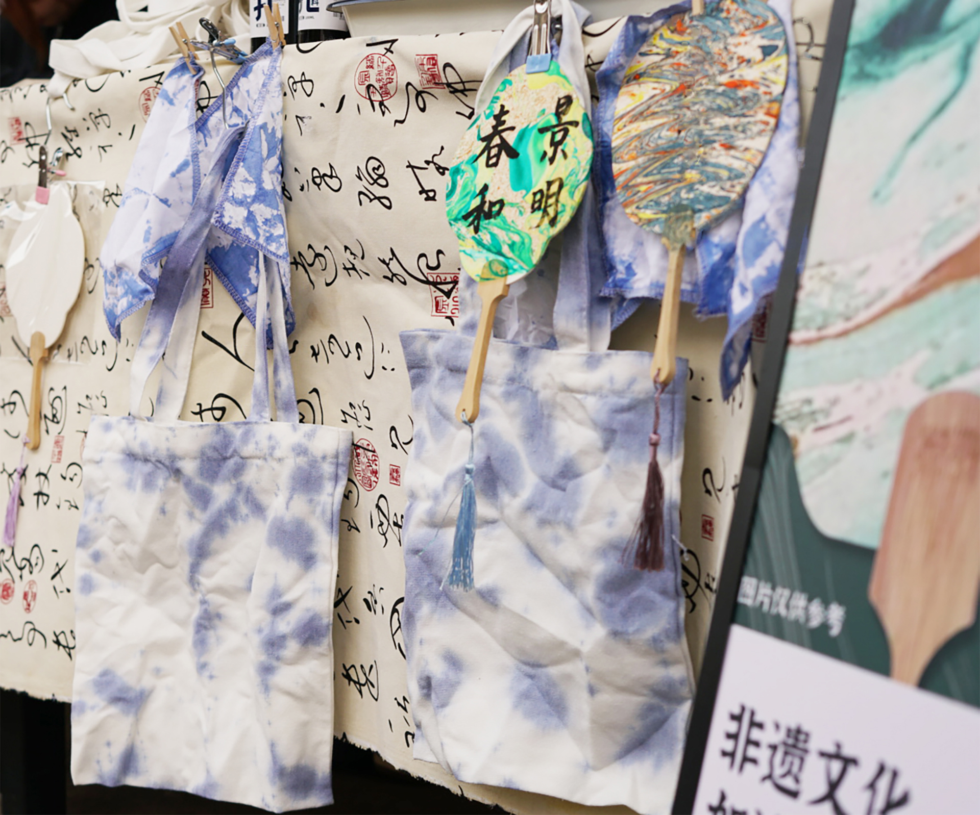 活动现场,正德有礼文创社团的成员们精心筹备,准备了丰富的扎染材料和工具,以及精美的漆扇样品。在社团指导老师胡雨然的耐心指导下,参与者们纷纷投入创作,通过扎染技艺在漆扇上绘制出别具一格的图案和色彩。在扎染的过程中,大家互相交流心得、学习技艺,共同探讨如何将传统技艺与现代审美完美融合,让非遗文化在现代社会焕发出新的光彩。