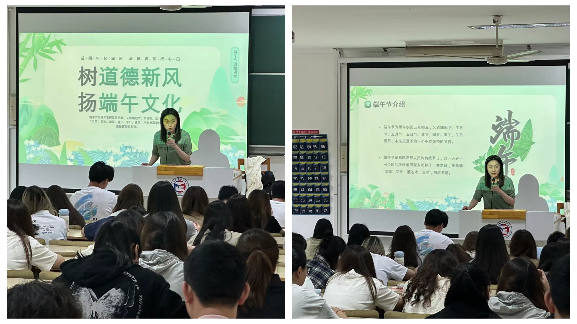 师生开怀话端午。辅导员魏玮于6月4日召开主题教育班会,通过讲述端午节的习俗和历史故事、端午节的诗词佳句知多少等多种形式,让学生们了解传统节日,向屈原学习,热爱祖国,增强民族自尊心和自信心。同时激发了同学们的爱国热情,体会到了传统节日的独特魅力。