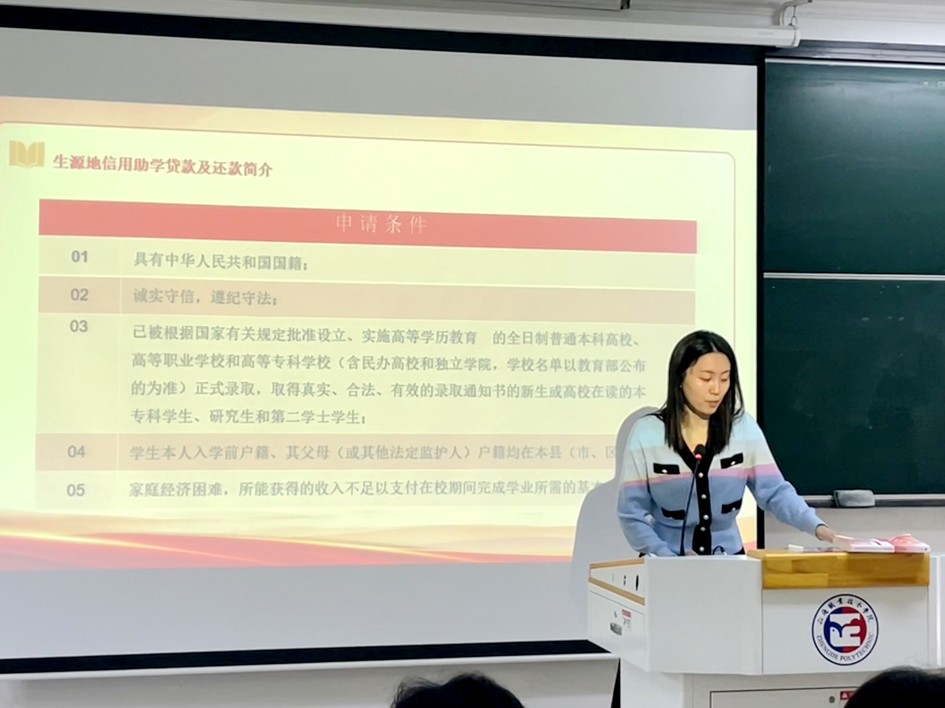 学生资助政策是国家对每一个困难家庭“不让一名学生因家庭经济困难而失学”的庄严承诺,是帮助家庭经济困难学生顺利完成学业、接受公平教育的民生工程。为切实减轻困难家庭供子女上学的经济负担,贯彻落实各项学生资助政策,做好家庭经济困难学生的资助工作,艺术设计与建筑工程系提前谋划、精心准备,组织开展生源地助学贷款宣传活动,6月17日,辅导员魏玮向2023级建筑室内设计专业同学们仔细介绍了相关资助政策。