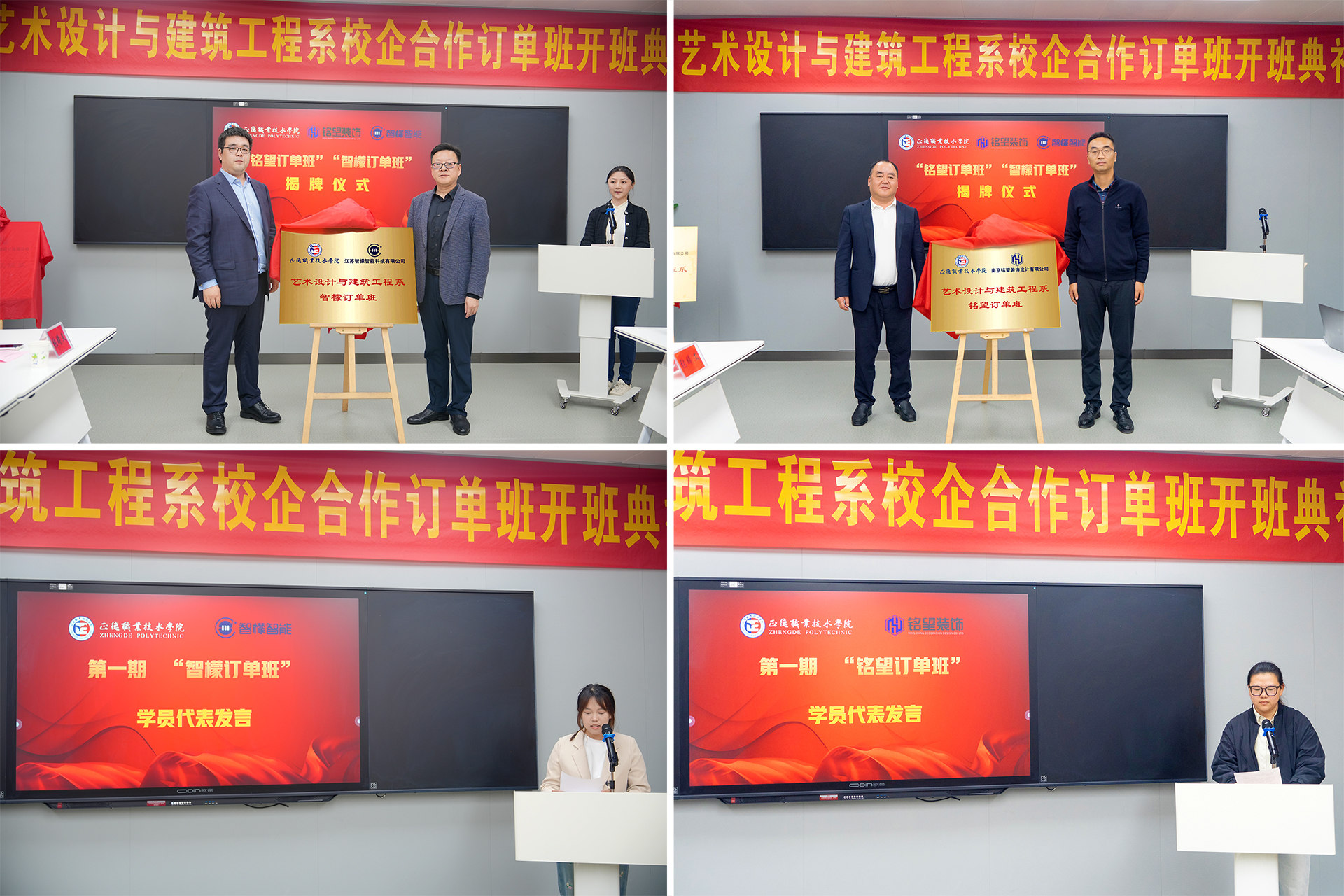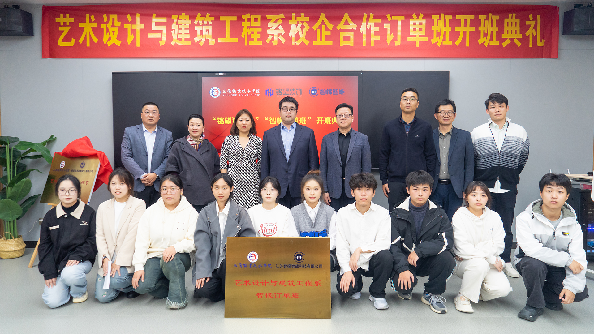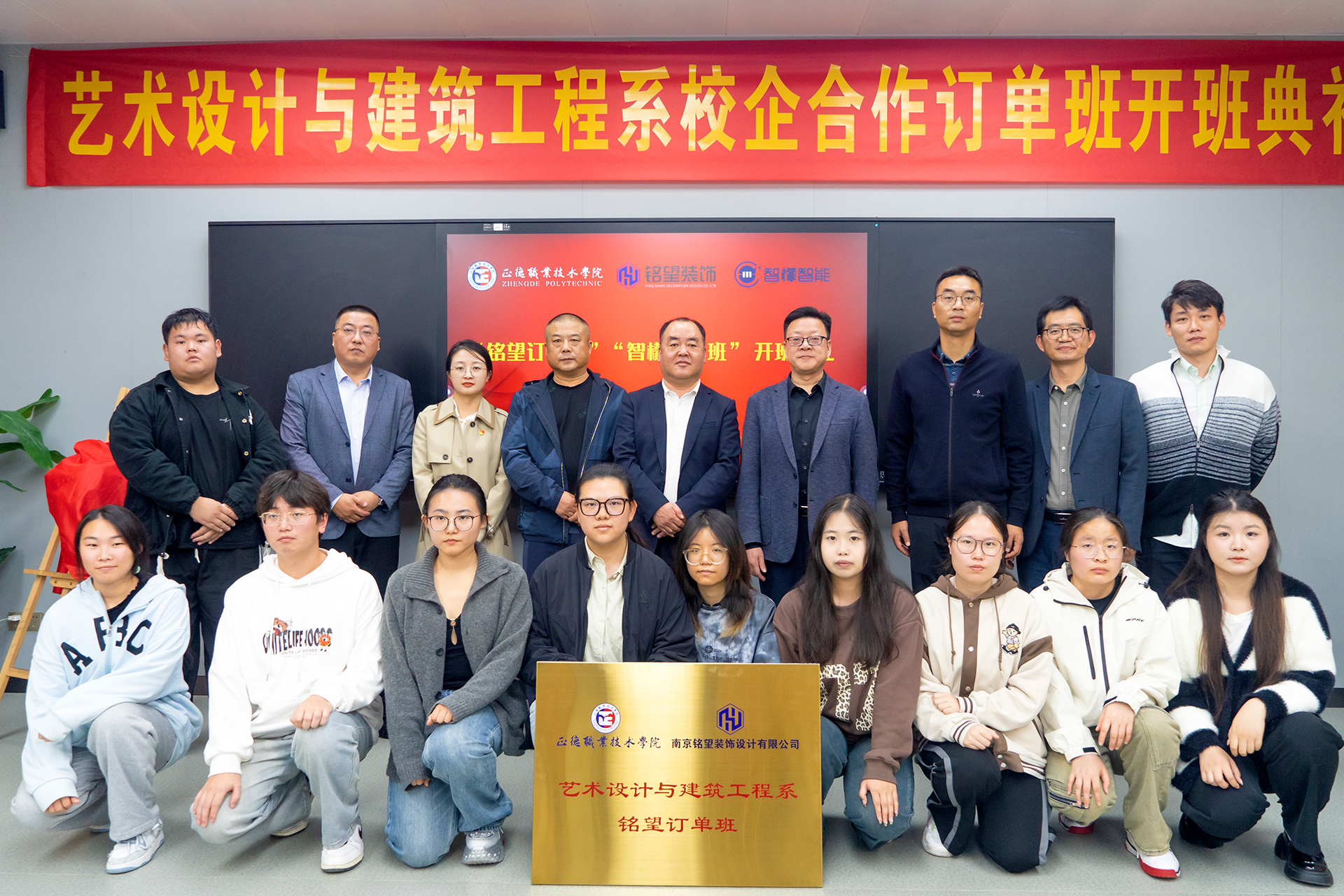 10月31日下午,探花porn 在一片热烈而庄重的氛围中,成功举办了与南京铭望装饰设计有限公司、江苏智檬智能科技有限公司合作的“铭望订单班”与“智檬订单班”首届揭牌典礼。这一事件标志着探花porn 在产教融合与校企合作的深化上取得了重要突破,坚实地向前迈进了一步。