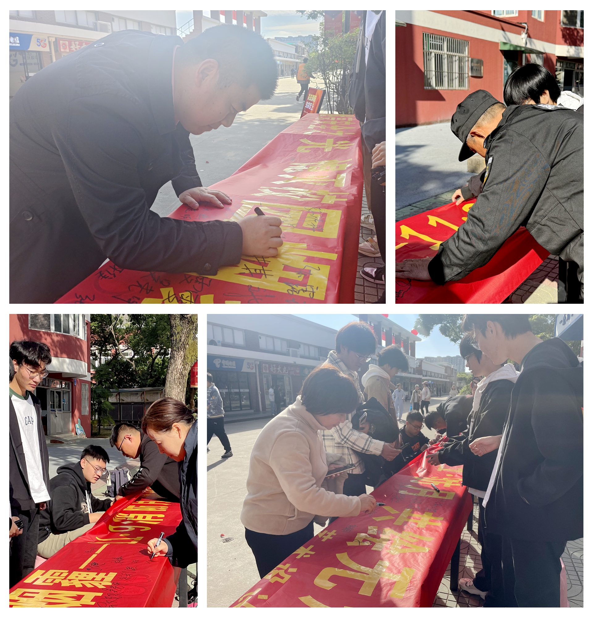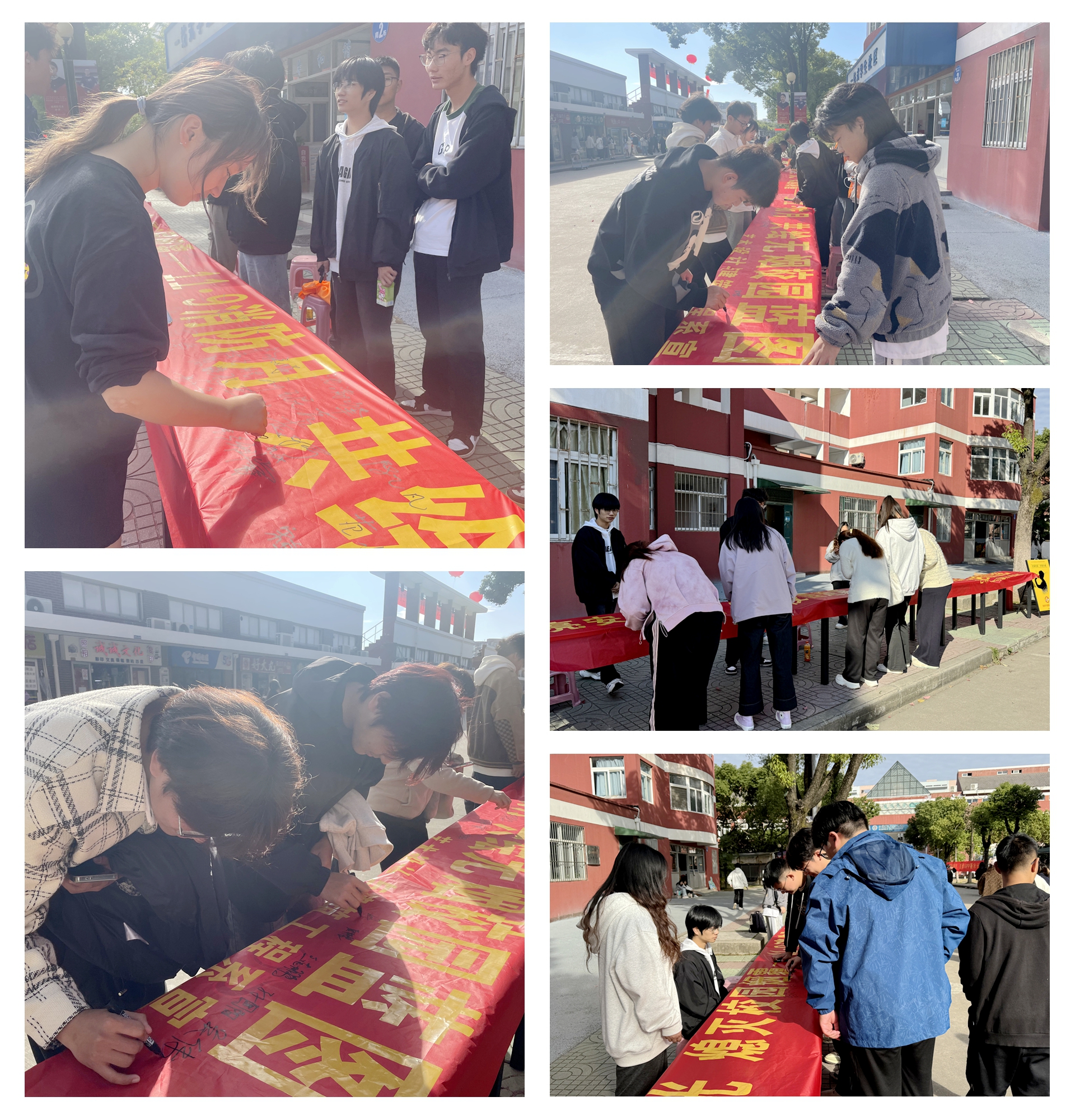 与此同时,11月8日上午9时,辅导员魏玮老师组织23级建筑室内设计专业学生们在南区一站式中心楼下开展横幅签名活动,同学们通过展示自己设计的宣传展板深深吸引了师生们,大家纷纷驻足,同学们给大家认真讲解了消防安全的重要性以及吸烟的危害后,师生们纷纷在横幅上郑重签下自己的名字,表示将注重消防安全、自觉远离烟草,共同维护清新、健康的校园环境。他们不仅是在表达自己对消防安全的承诺,更是在向全校师生传递消防安全和控烟的重要性。
