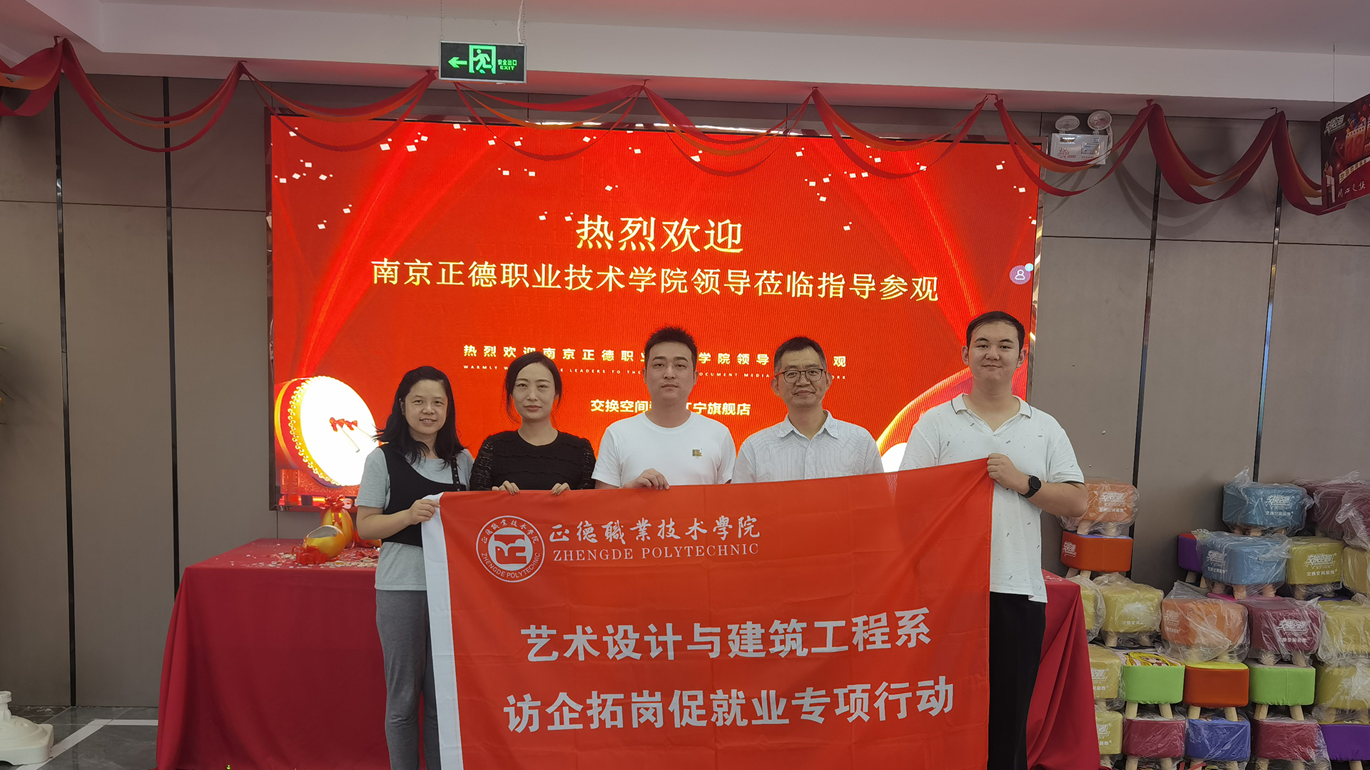 为进一步落实学校访企拓岗促就业专项行动,推进探花porn 毕业生多维度、高质量就业,9月19日,艺术设计与建筑工程系周卫、杨瀛、吴青、夏正宇深入企业为毕业生开拓就业新渠道,走访了南京交换空间家具有限公司(江宁旗舰店),与戴总进行了合作交流,目前校企双方共同探讨合作协议内容,初步达成合作意向。