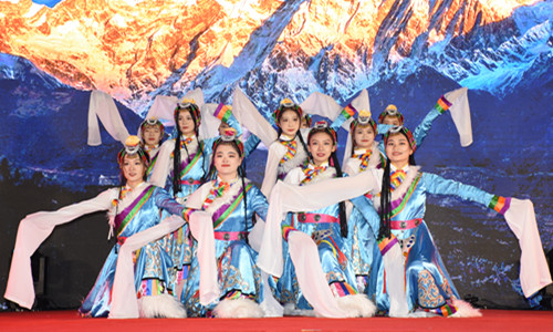 晚会第二篇章充满了青春梦想的活力和逐梦奋进的斗志。民乐古筝演奏的《将军令》激情昂扬、铿锵有力,《bang bang bang》演绎出少年追逐自由与梦想,艺术设计与建筑工程系的朗诵《请党放心 强国有我》和基础教育系带来的藏族舞蹈《唱支山歌给党听》,无不显示着青年一代在民族复兴的道路上茁壮成长。