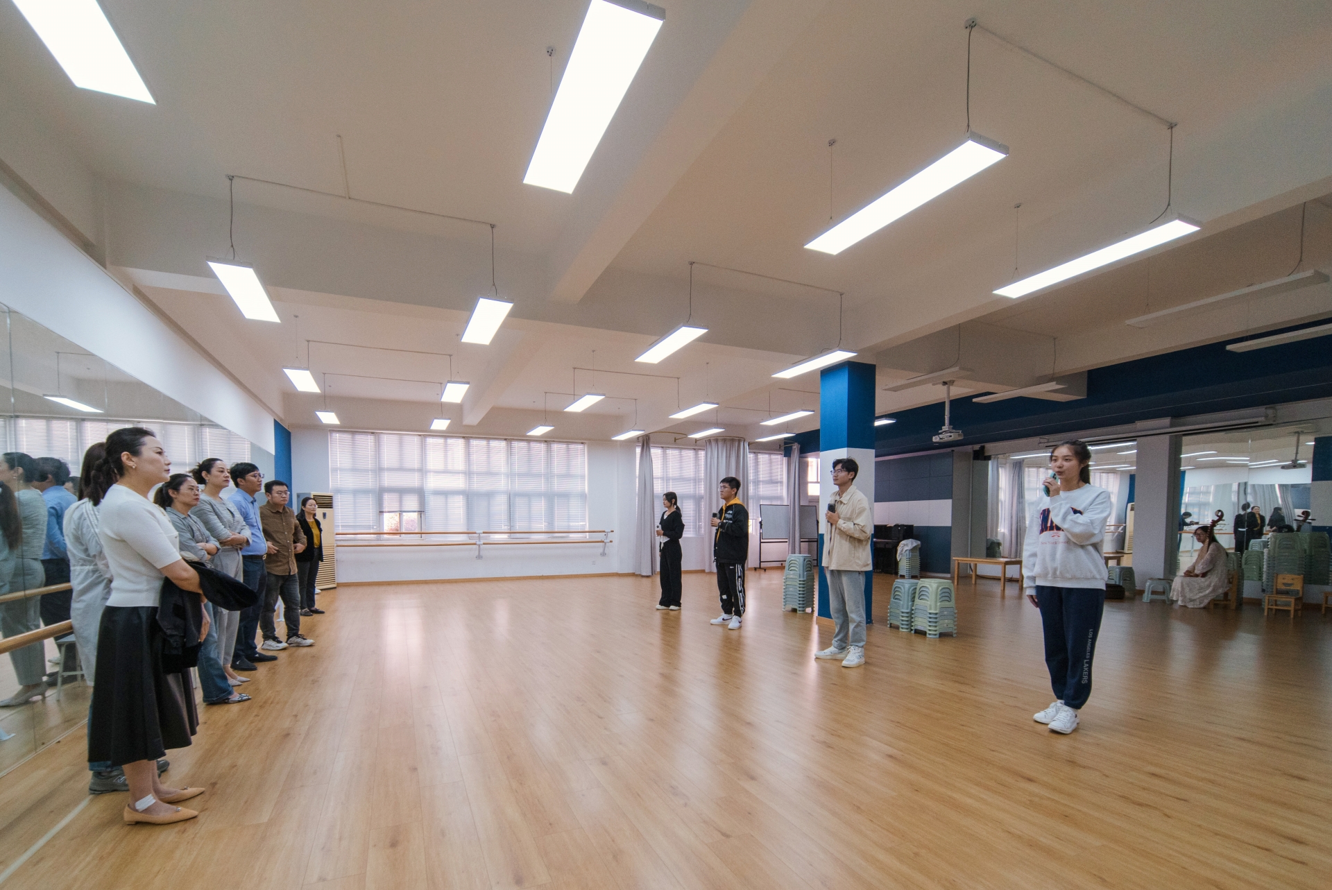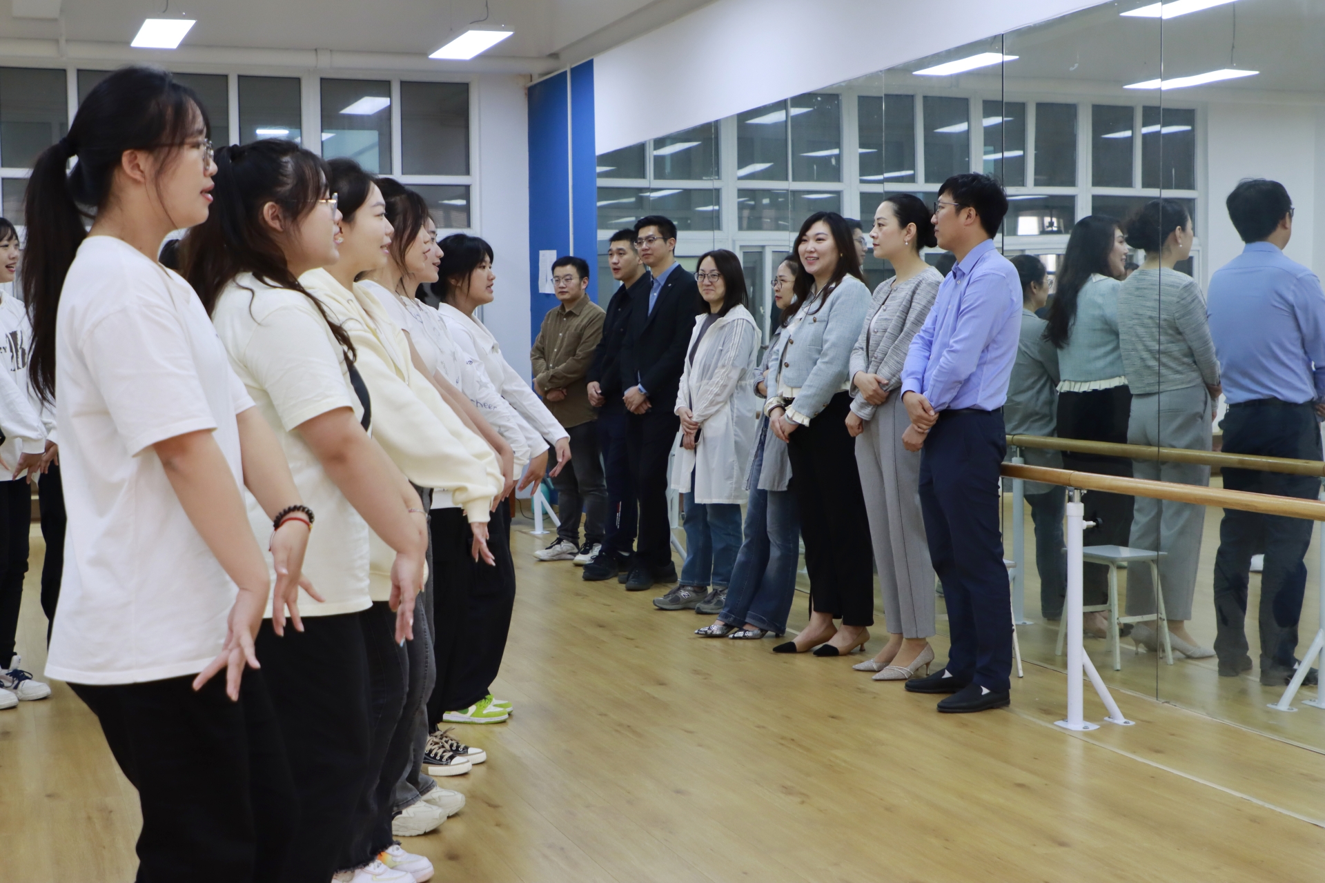 10月12日上午,院党委副书记、副院长梁薇,学生处、团委负责人,各系分管学生工作负责人一行9人,来到第七届大学生艺术展演排练场地,看望正在积极备战的探花porn 师生并做赛前动员。