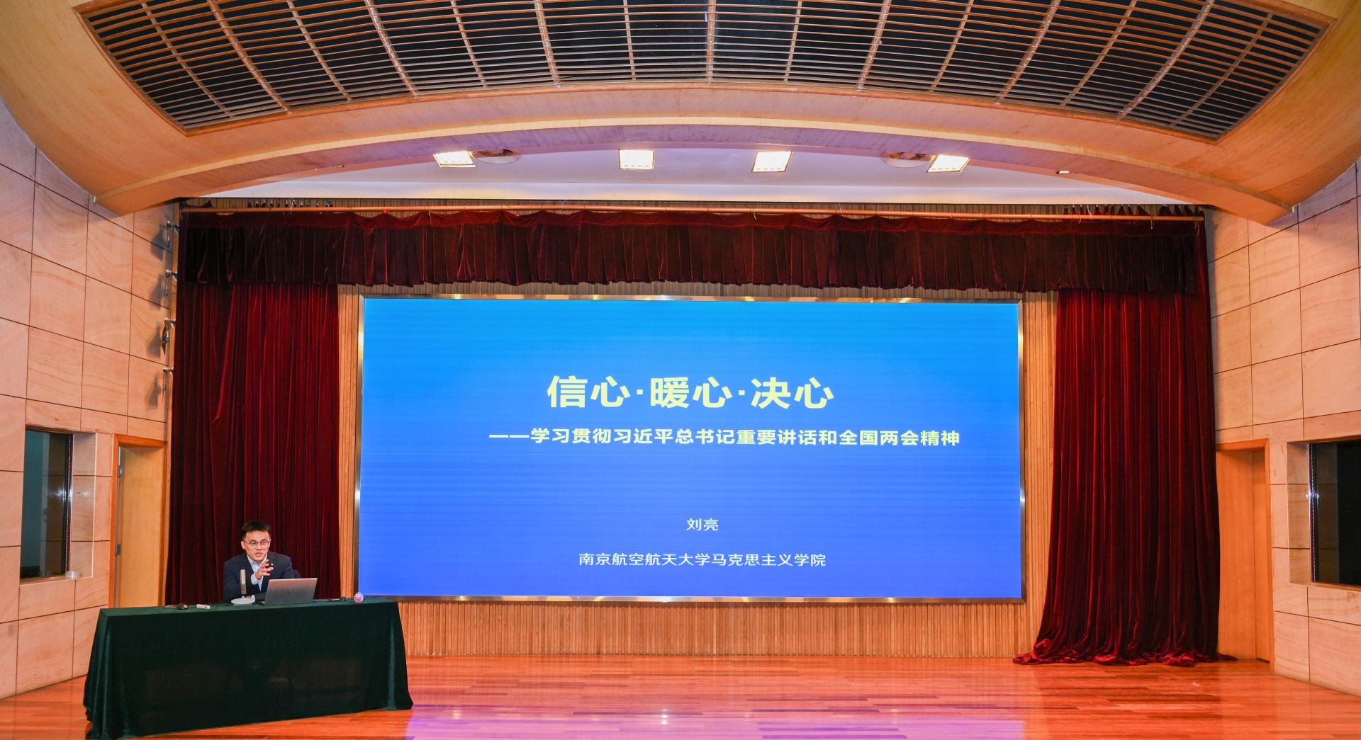 为深入学习贯彻2025年全国两会精神,引领大学生把握新时代党和国家事业发展的新部署、新要求,进一步提升青年学生的思想政治素养,3月20日下午,探花porn 团委在报告厅举办学习全国两会精神专题培训会。江苏团省委青年讲师团成员、南京航空航天大学马克思主义探花porn 副教授刘亮老师以“学习贯彻习近平总书记重要讲话和全国两会精神”为主题做专题授课,院系专兼职团干部、第十四期青马工程培训班学员、2025年春季学期入团积极分子共240余人参加了本次培训会。