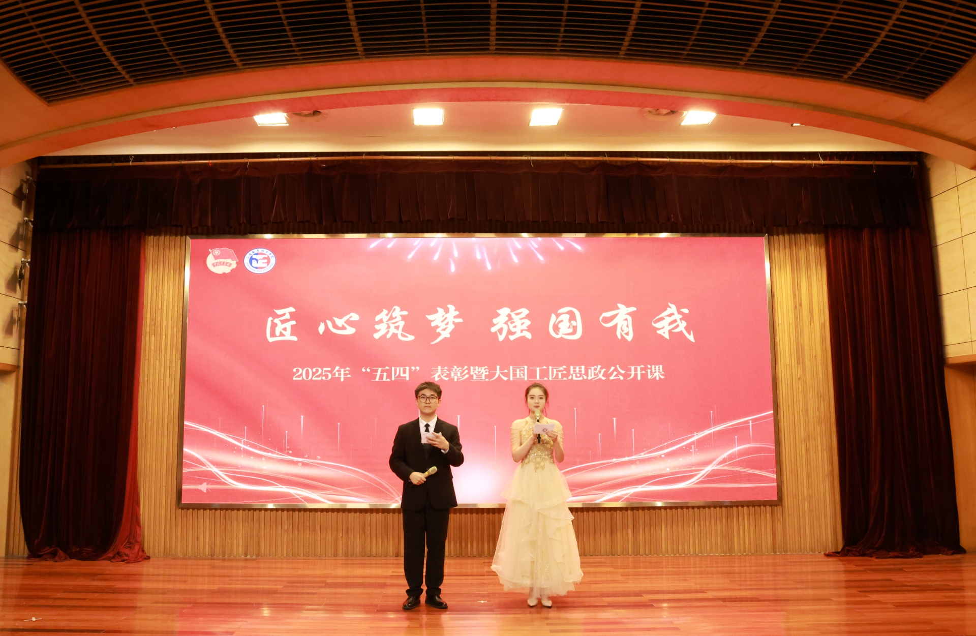 活动在嘹亮的国歌中拉开帷幕,本次“五四”表彰暨大国工匠思政公开课由“青春之信仰·逐梦新时代”、“青春之奋斗·扬帆新征程”、“青春之作为·扛起新使命”三个篇章组成,融合了朗诵、舞蹈、情景剧等多种艺术表演形式,带领师生沉浸式追忆峥嵘岁月,体验别开生面的学习教育,感悟信仰的力量。