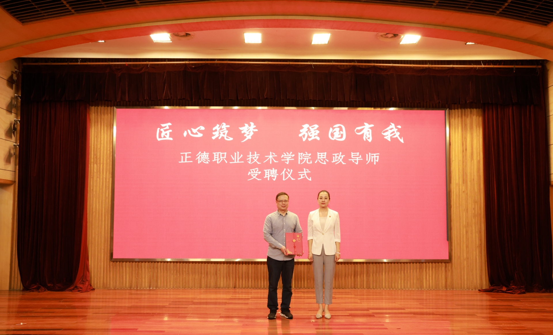 思政导师,梁薇为其颁发聘书。