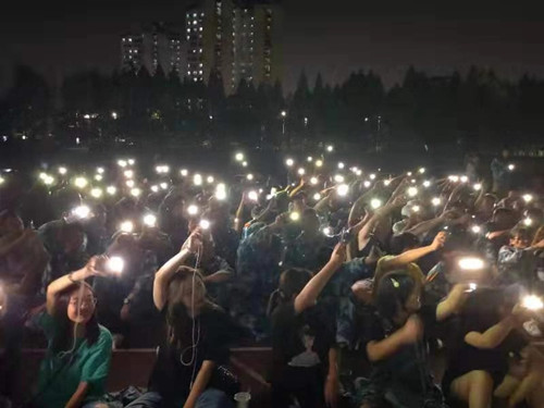 白天军训场上,2019级的新同学们身着迷彩服站成一排一排,跟随着教官的口令整齐划一地行动。一年一度的新生军训在校园中有秩序地进行着。下午军训下课,在辅导员的带领下,操场和篮球场上举行了丰富多彩的庆祝中秋活动。