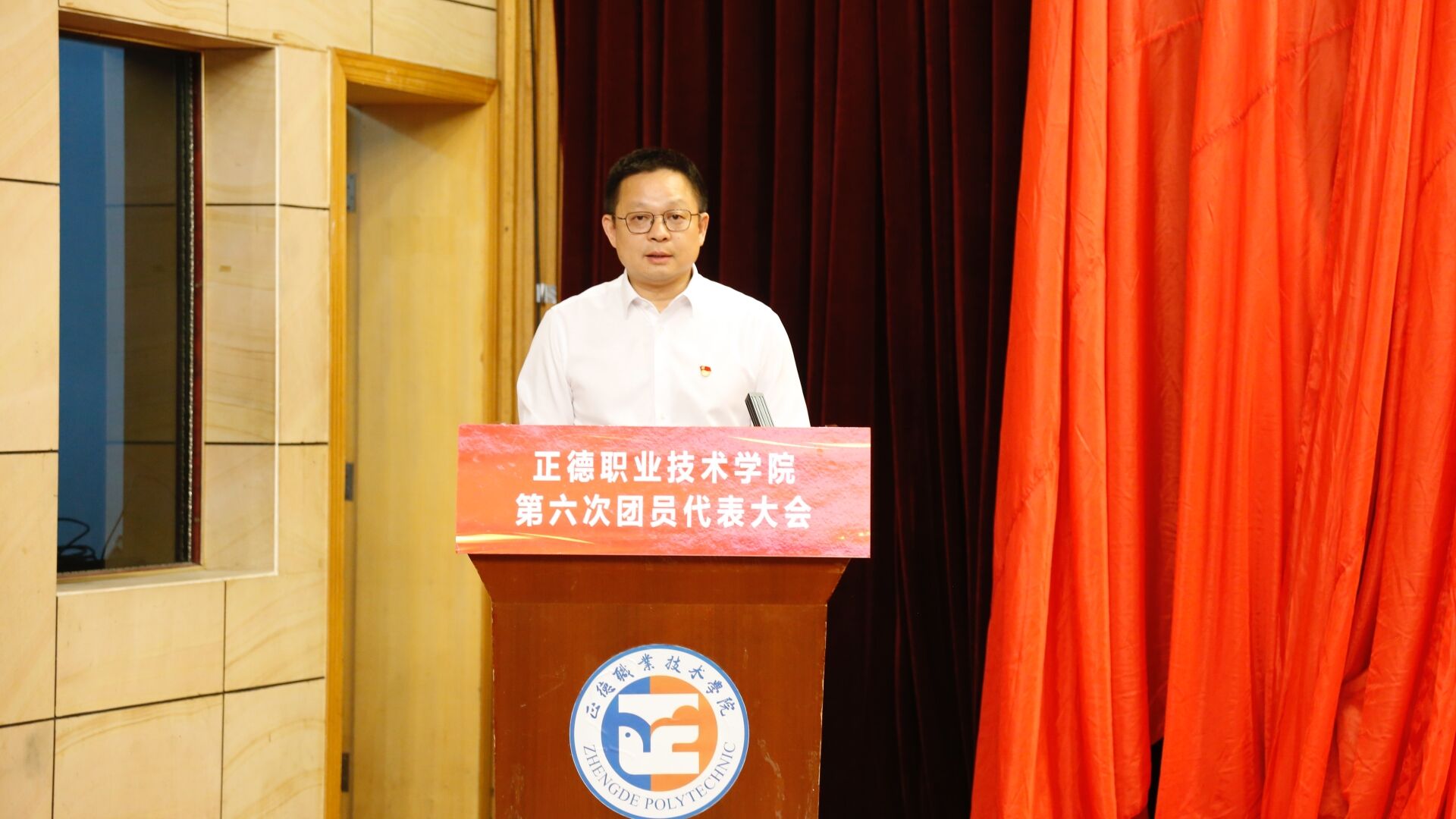 施玮代表团省委对大会的召开表示热烈的祝贺,充分肯定了正德团委在江苏高校共青团改革发展过程中所作的积极贡献,他指出高校共青团要充分发挥自身组织优势,把握新形势、新要求,进一步增强使命感、责任感和紧迫感,不断推进高校共青团工作改革创新,为青年成长成才做出新的贡献。在讲话中他提出三点建议:一是坚持立德树人,强化思想引领;二是用心用情用力,服务青年成长;三是深化实践育人,助力全面发展。