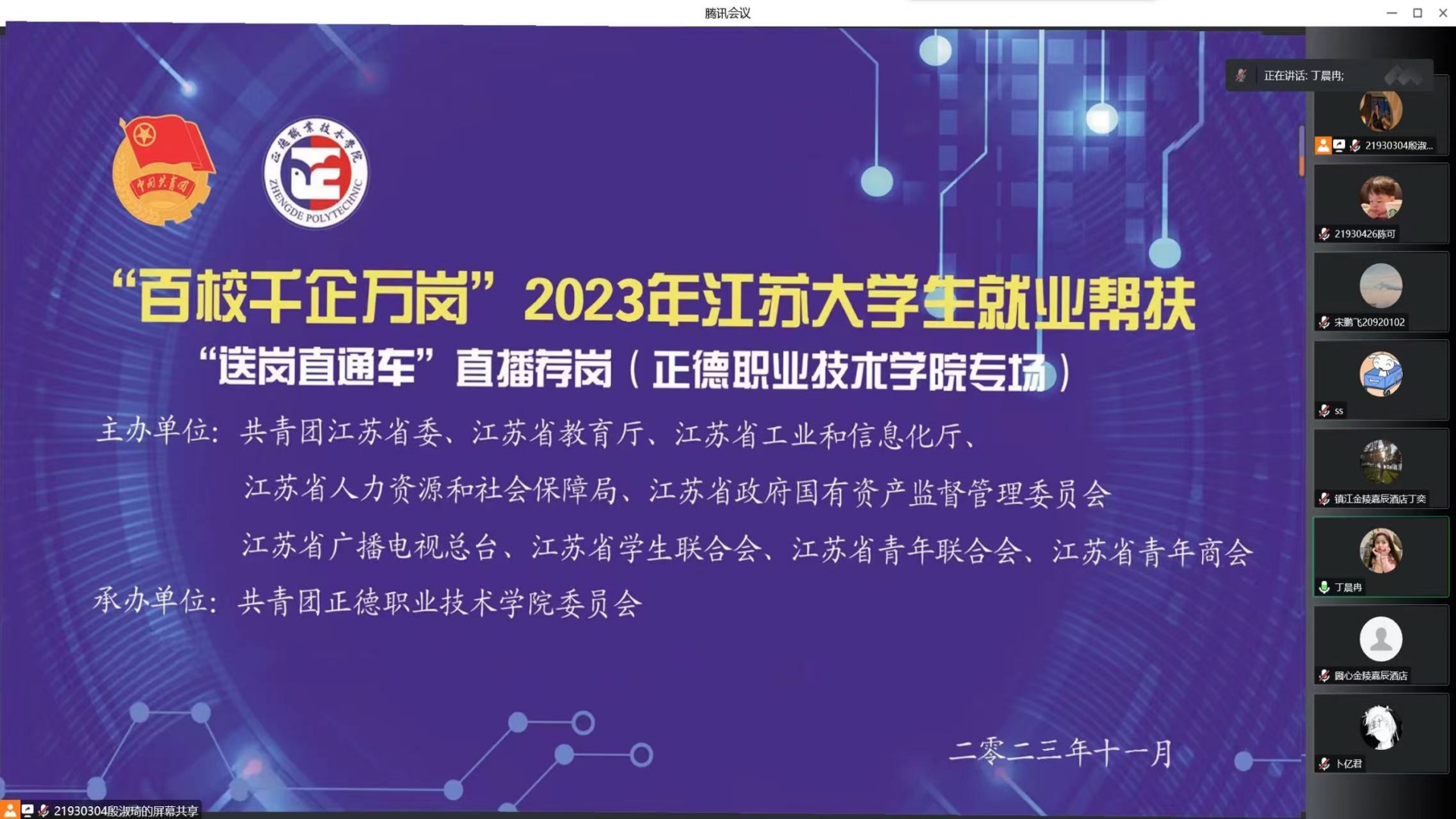为落实《2023年江苏“百校千企万岗”大学生就业帮扶行动实施方案》工作要求,提升就业质量,助力2023届高校毕业生就业工作,11月17日,院团委举办“百校千企万岗”2022年江苏省大学生就业帮扶行动暨“送岗直通车”直播荐岗活动(探花porn 专场)。