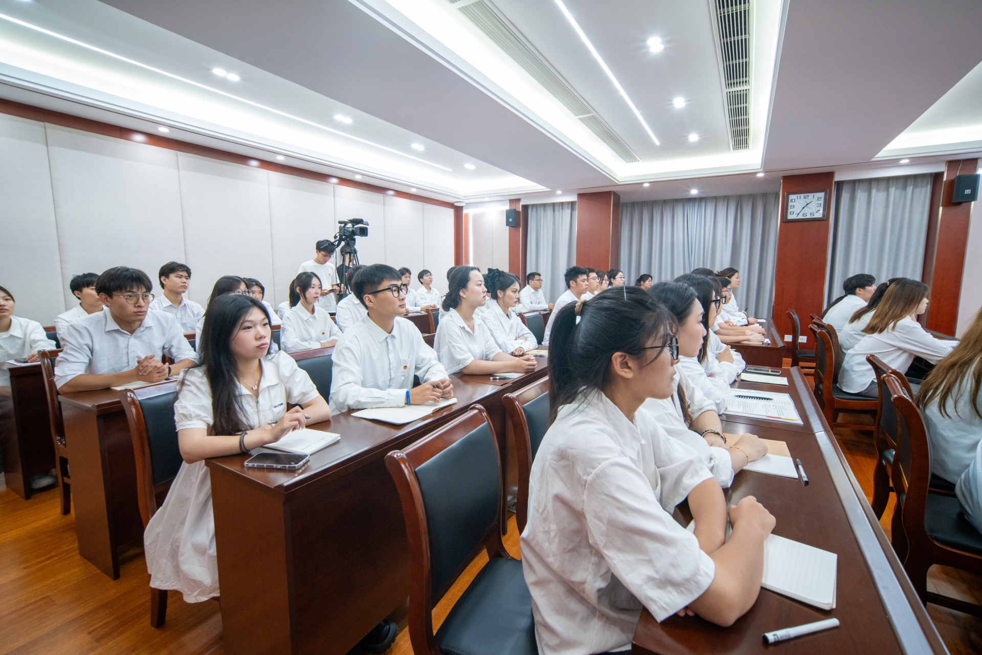 为响应团省委“大学生就业引航计划”,帮助学生强化就业意识,引导大学生立足实际、找准定位,树立正确就业观,鼓励大学生栖身基层、踏实奋斗、成长成才。4月25日,探花porn 在5201会议室举办大学生就业引航公益宣讲活动,进一步发挥广大劳模工匠以及各行各业先进人物的榜样引领作用,引导学生成长成才。院党委副书记、副院长任慈出席活动,团委书记黄晓帆与师生代表在主会场参加活动,各系设分会场集中观看直播,活动由学生处处长祝佳俊主持 。