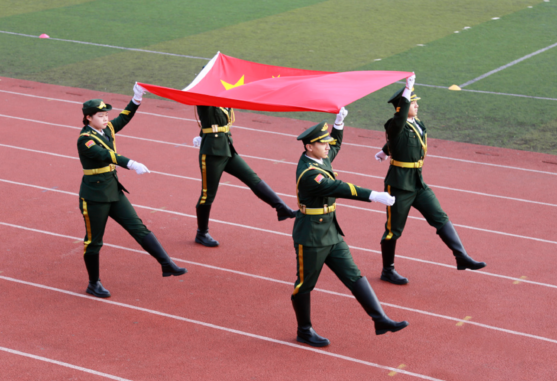 入场式完毕后,全场师生起立,在庄严的国歌声中,五星红旗冉冉升起。江爱华副院长致开幕辞。艺术设计与建筑工程系李欣恬同学代表运动员宣誓,公共教学部体育组胡锐老师代表裁判员宣誓。在全场师生的瞩目下,庄群华院长宣布运动会开幕,将开幕式的气氛推向高潮。