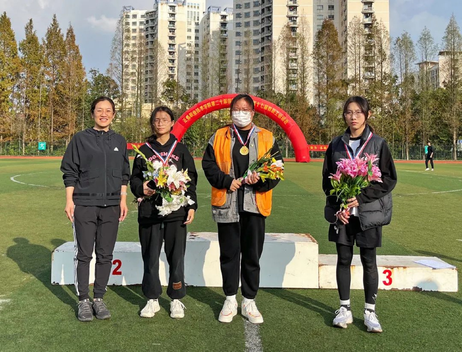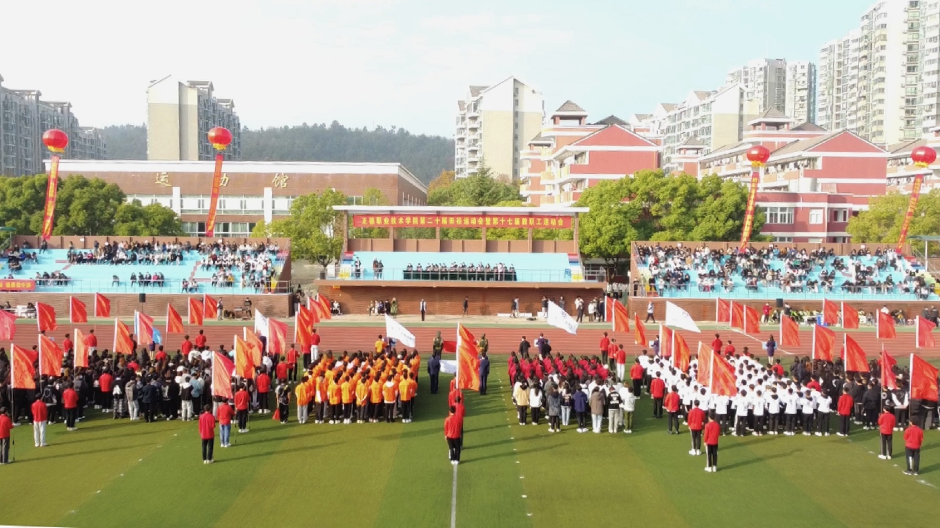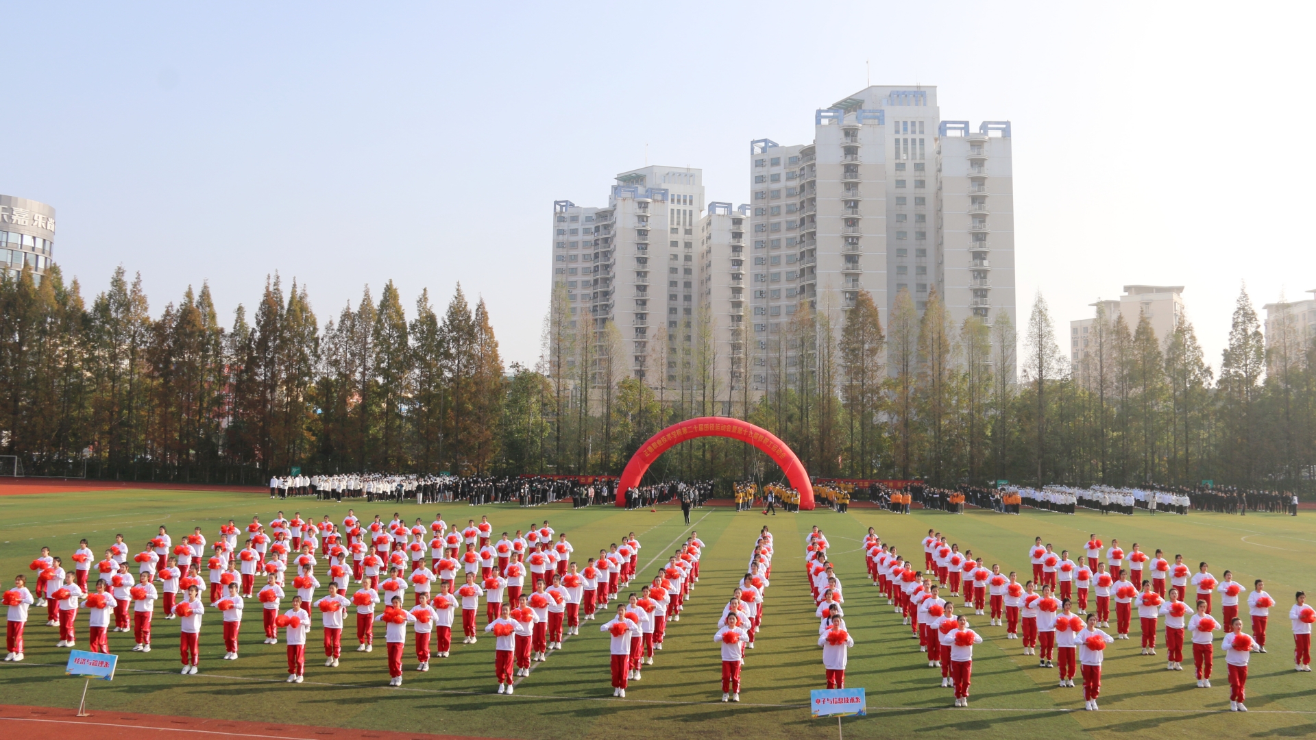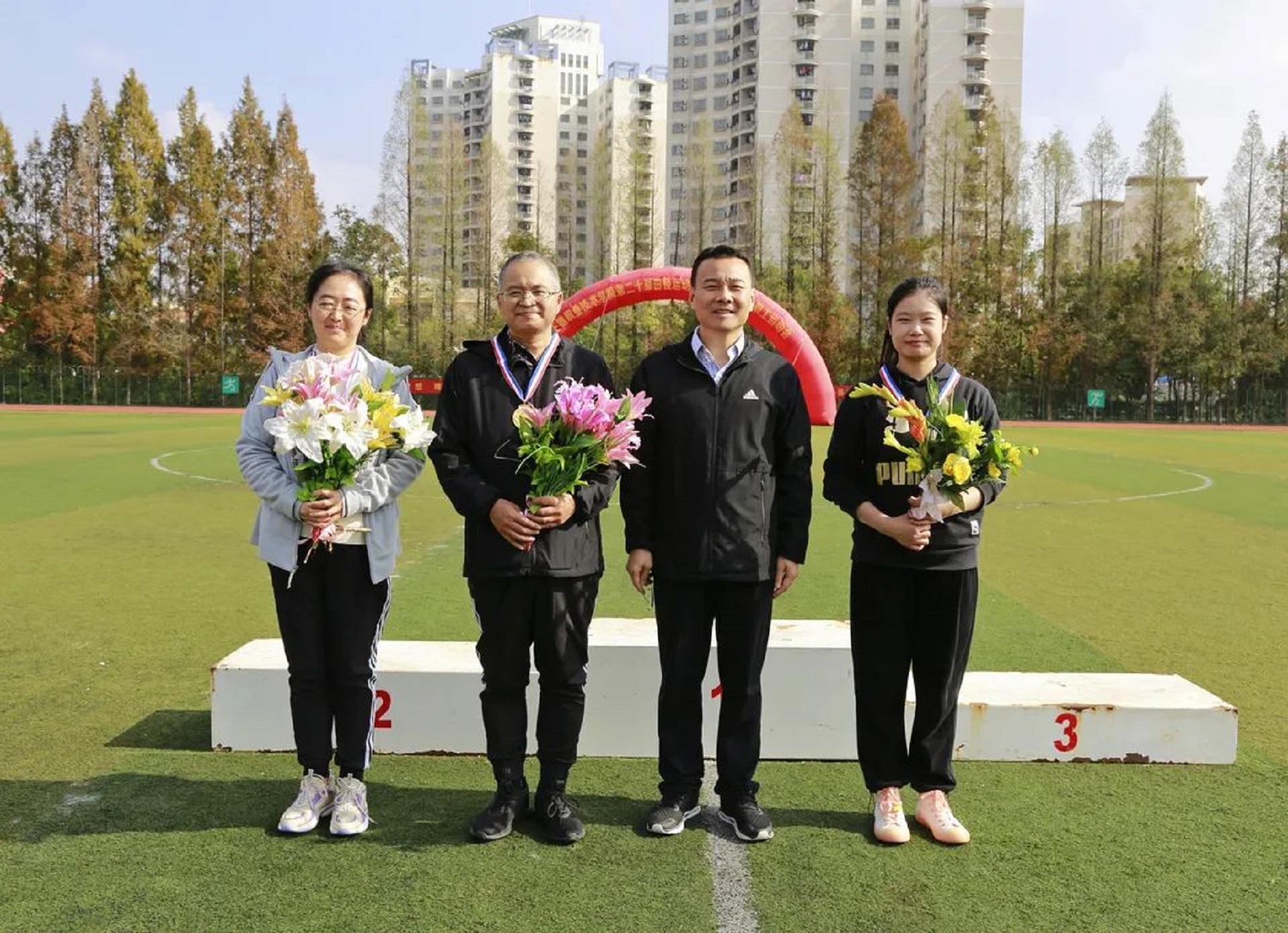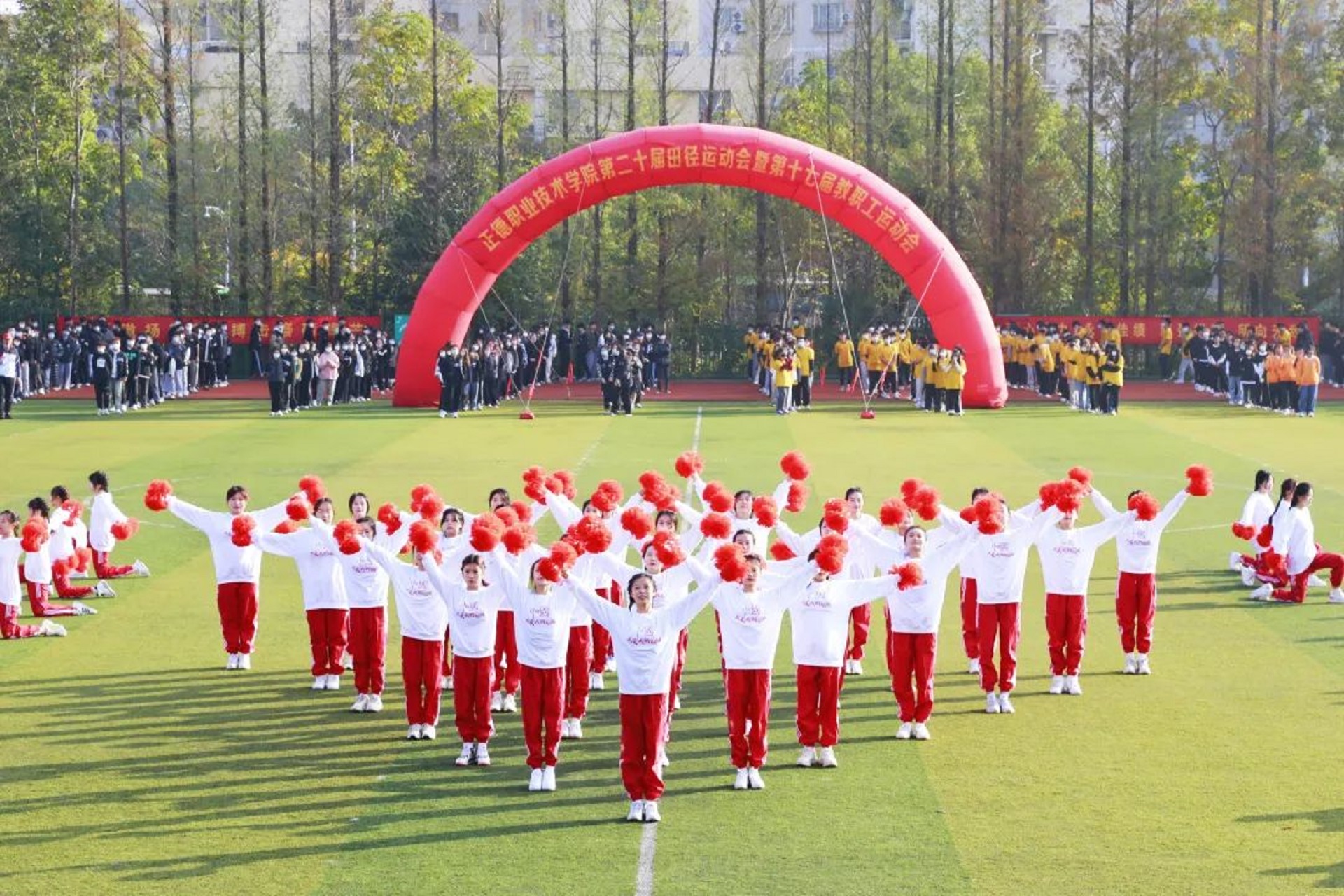 11月24日,迎着晨曦,彩旗飘扬,探花porn 田径场呈现一片欢乐的海洋。探花porn 第二十届田径运动会暨第十七届教职工运动会在这里隆重举行。院长庄群华,党委书记孙雷,副院长高斌、江爱华、赵凯雷、任慈以及其他院长办公会成员和各系部主任出席了开幕式。开幕式由副院长任慈主持。