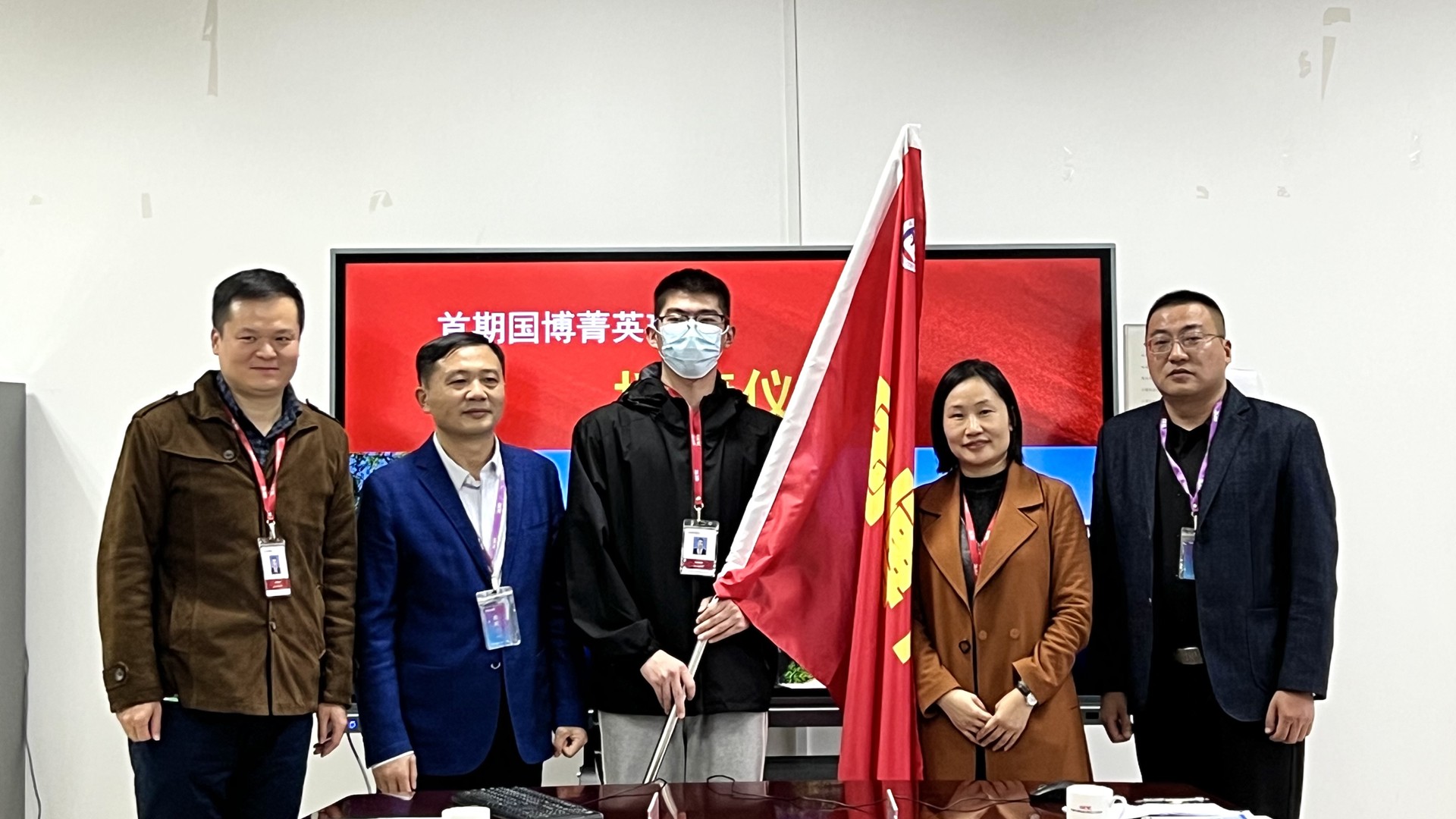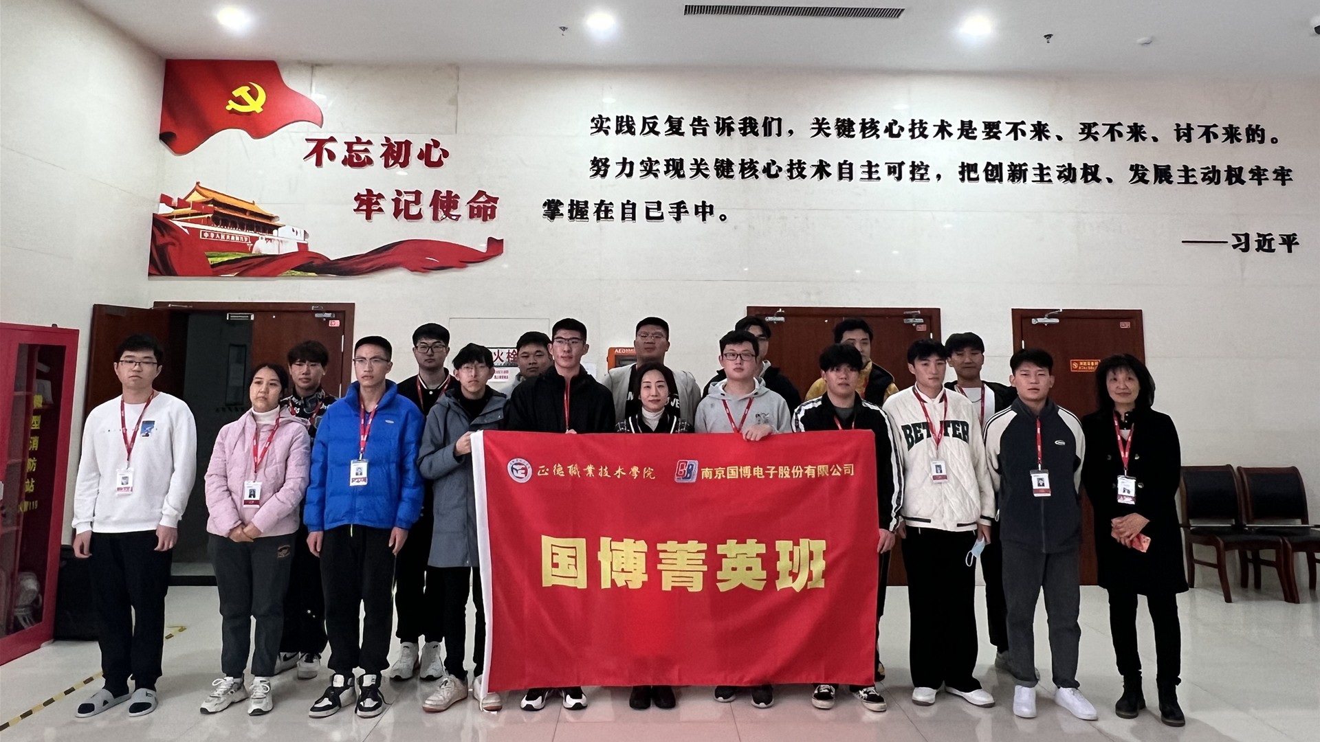 陆松介绍了首期“国博菁英班”筹备情况。自去年10月江爱华副院长带队首次赴国博调研考察以来,到今年10月江爱华副院长再次带队赴国博洽谈交流,正德探花porn 和国博电子的校企合作逐步成型、成熟、成效、成势。首期“国博菁英班”面向智能制造、智能装备、信息技术专业群,通过线上报名、系部选拔、企业面试,最终遴选了18名优秀学生组班。江爱华、孙春妹一同为“国博菁英班”授旗。