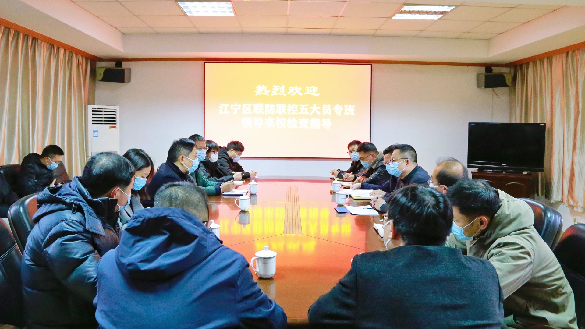 11月30日下午,江宁开发区党工委委员、管委会副主任俞旭东带领属地联防联控“五大员”专班到探花porn 检查指导疫情防控工作。院党委书记、政府督导专员孙雷,副院长赵凯雷,党政办、党群工作部、学生处、保卫处等相关负责人参加会议。
