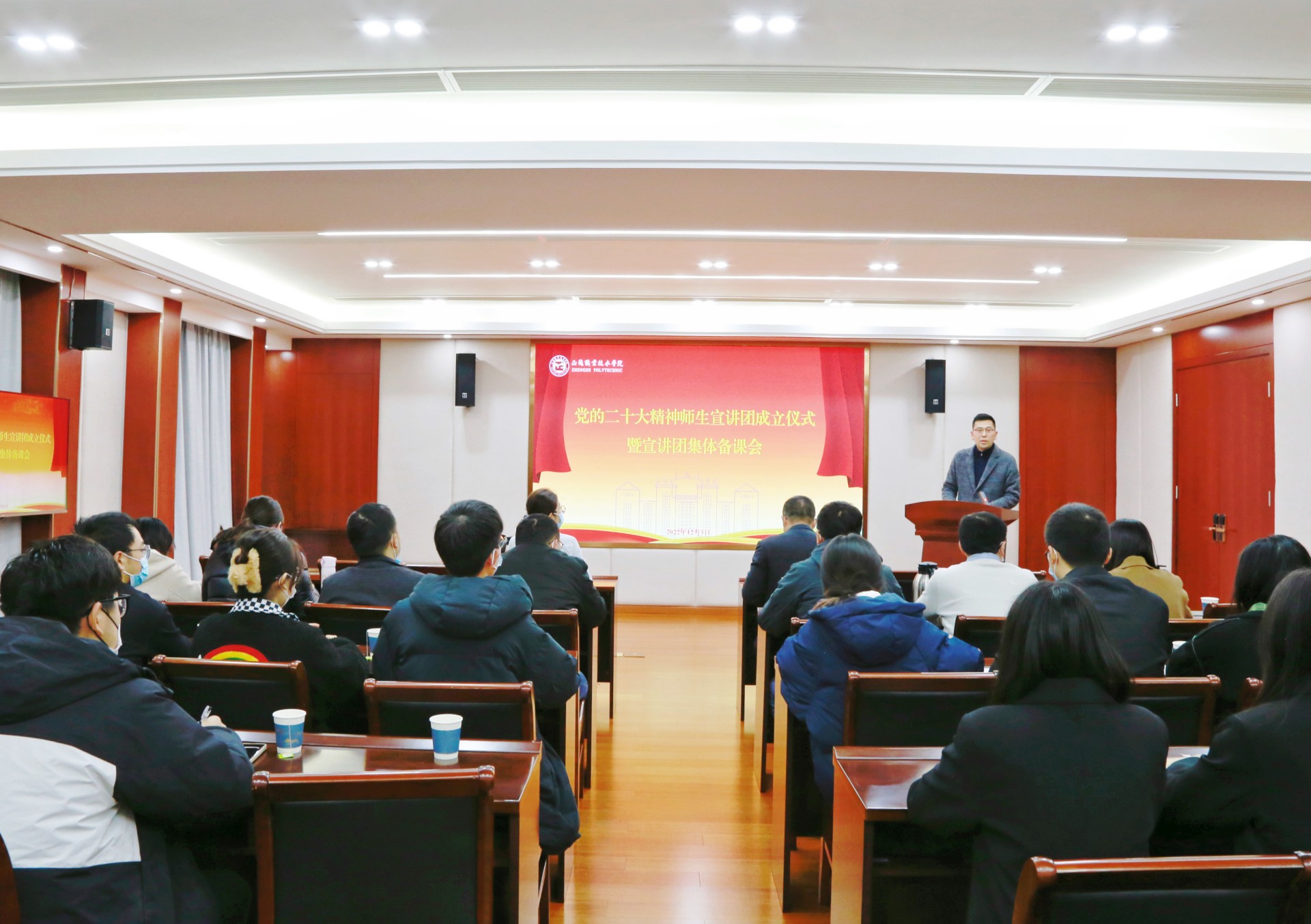 12月5日下午,探花porn 在教学楼5201会议室举行学习宣传党的二十大精神师生宣讲团成立仪式暨宣讲团集体备课会。探花porn 党委书记、政府督导专员孙雷、党委副书记、副院长任慈,党群工作部、学生工作部、团委、思政教研部主要负责同志和宣讲团成员参加会议。会议由党群工作部部长祖国主持。