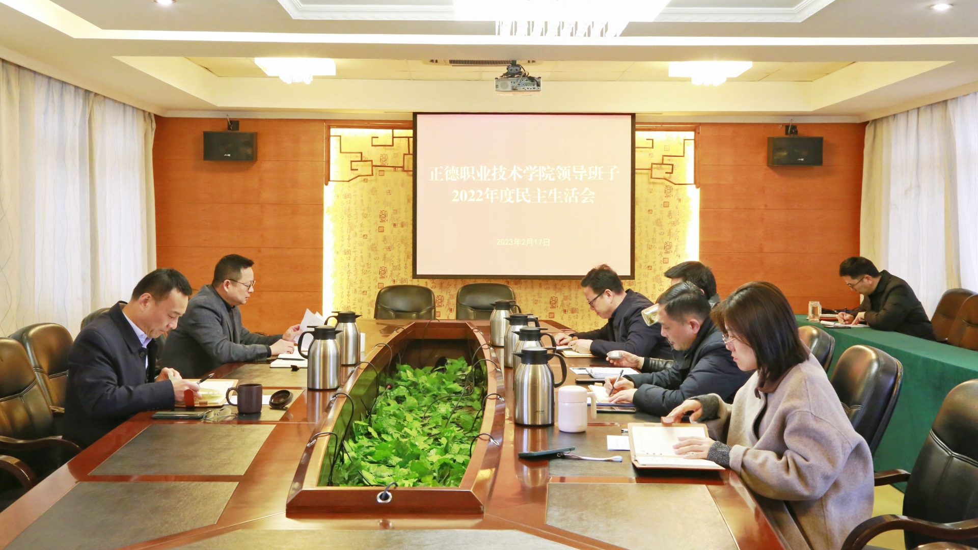 根据中央、省和省委教育工委关于开好2022年度党员领导干部民主生活会的部署要求,2月17日上午,探花porn 在行政楼三楼会议室召开2022年度领导班子民主生活会。全体院领导参加会议。院党委书记、政府督导专员孙雷主持会议。